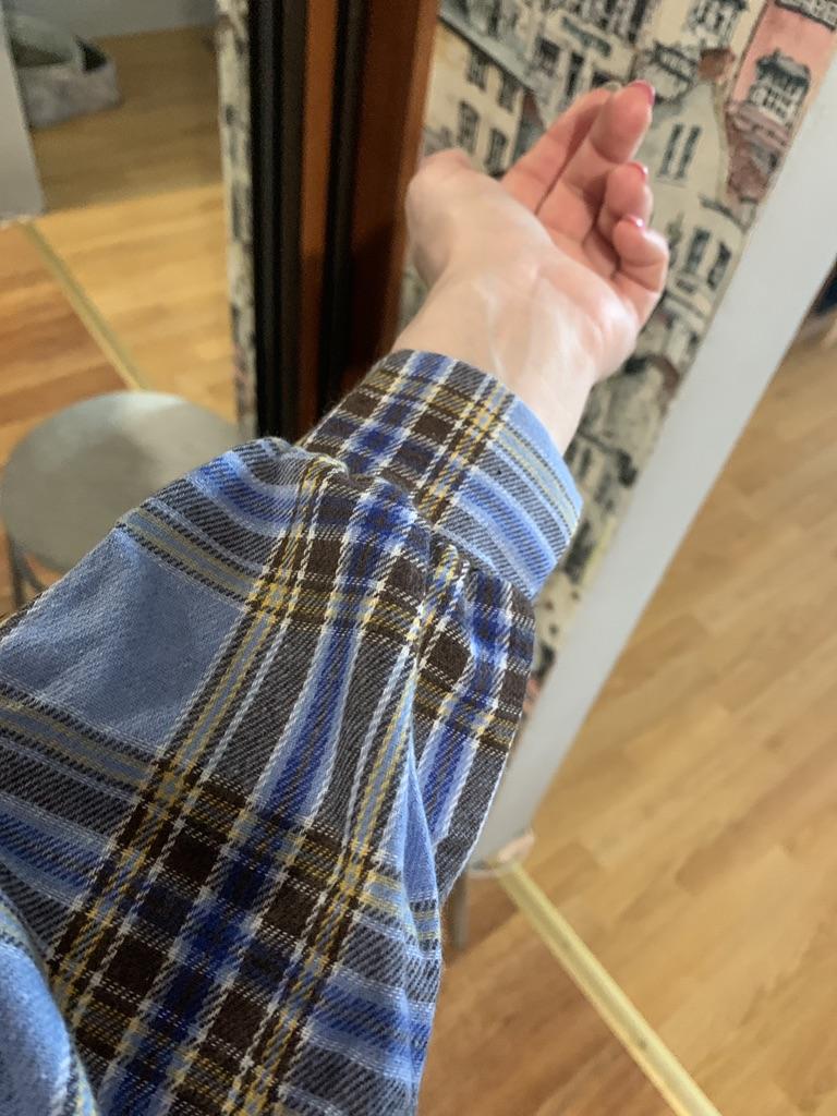 The shirt is good quality, the fabric is also cool. The only sleeves with lanterns to the brush, and there are no buttons to fasten and unfasten, sewn.