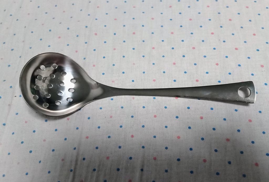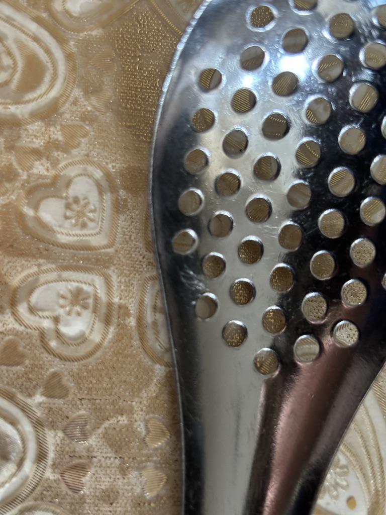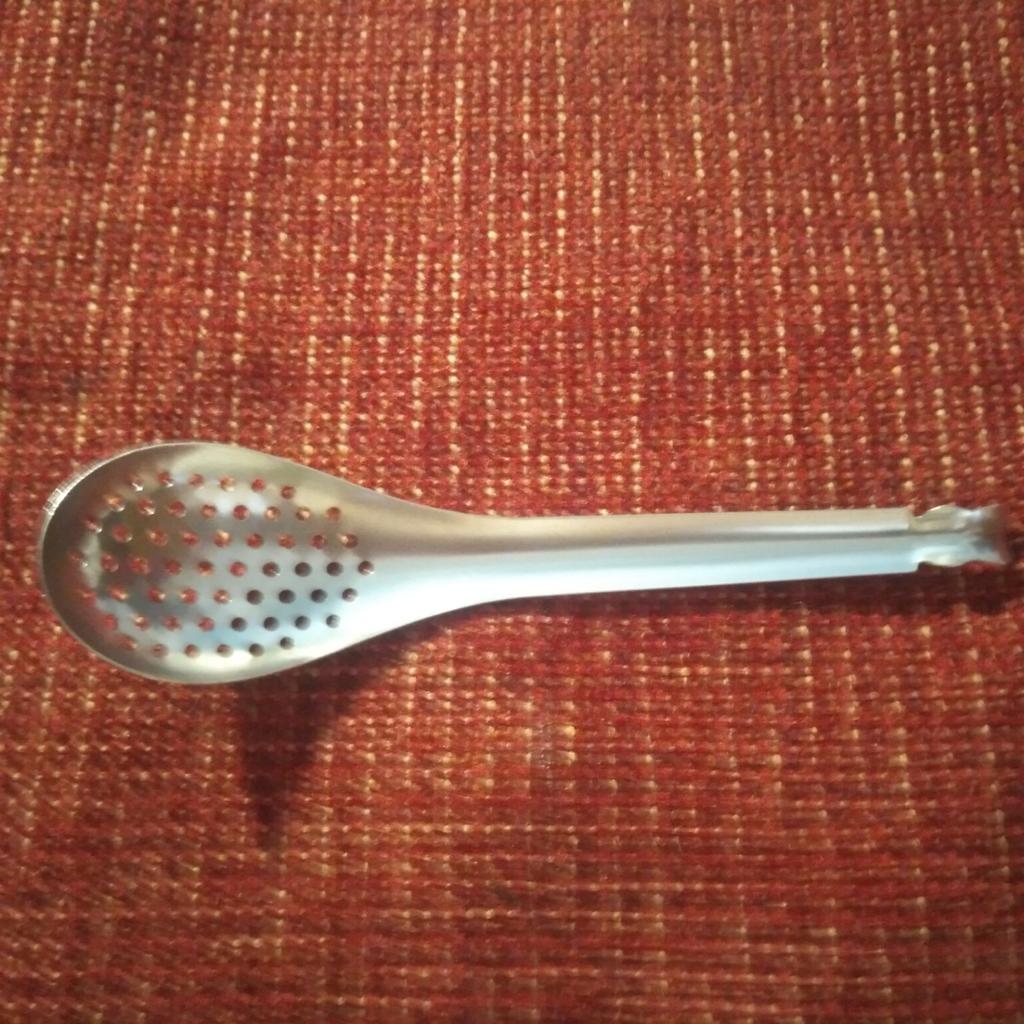 a very useful spoon for straining, it is made of very thin sheet metal, although it does not matter functionally, but it would be nicer in the design of a classic spoon [a little thicker)