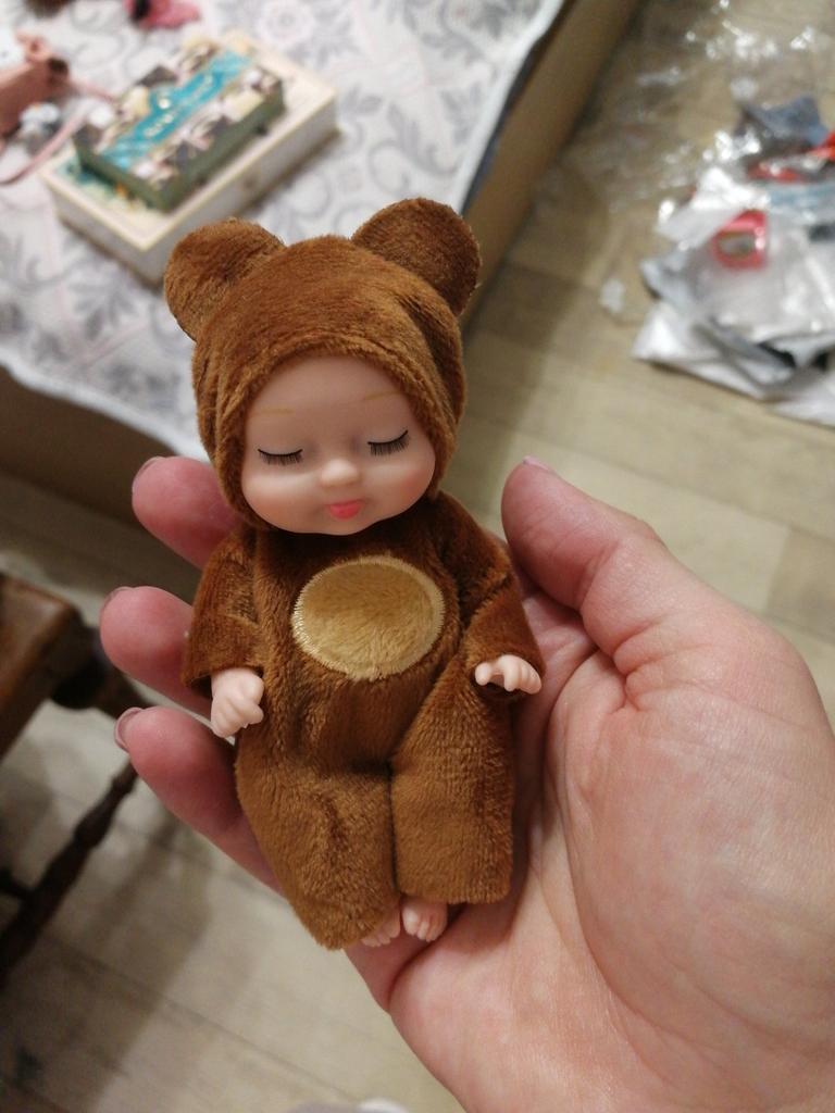 The doll is very cute, it's small, it fits in my palm, the girl likes it a lot, the quality is good, I recommend it to children, thank you Joom👍