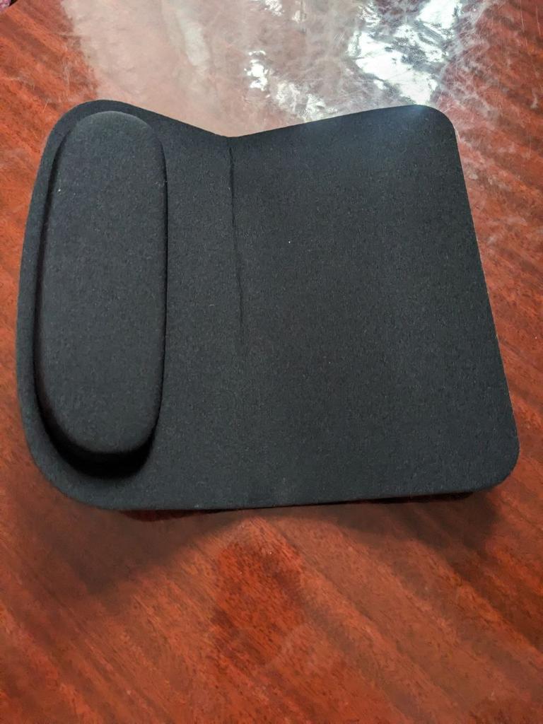 The hand pad is very low - a thin layer of foam rubber. Therefore, when you put your palm on it, it falls down and your hand is still tense when you hold the mouse.