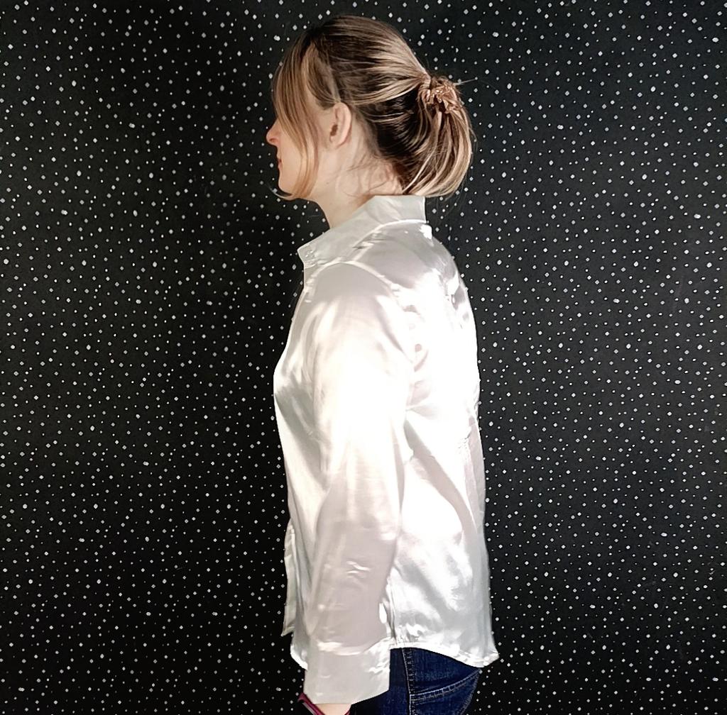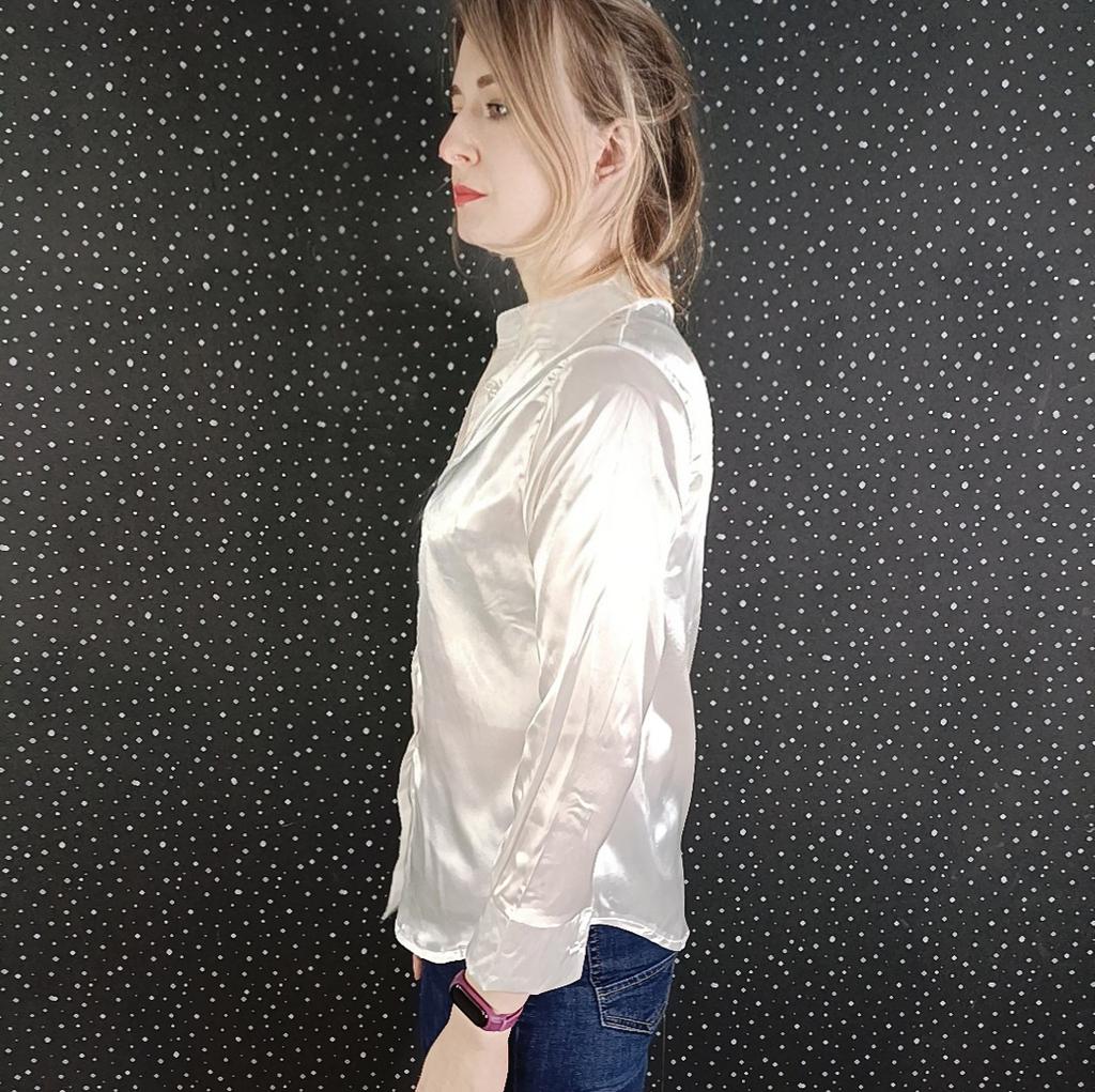 The shirt is good, I really thought the fabric would be different, does this one look like satin? Easy to iron, threads do not stick out