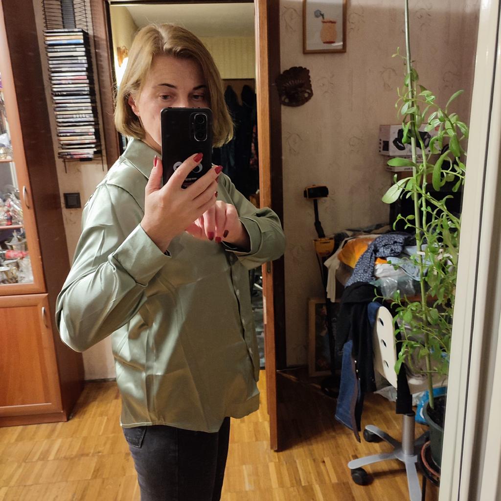 I ordered a size larger, namely M, although I wear S, but the shirt is back to back ... The sleeves are short, they are tight. Before that, I ordered a light brown one, so it was free, how I love it, and this blouse is clearly for a child