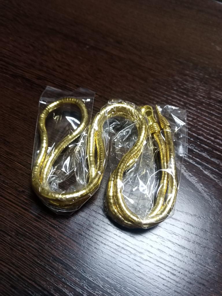 Cool stuff!!! It doesn’t look like gold, you can immediately see that something else, but it looks very impressive !!! All soft can be twisted on the hand and around the neck! Almost imperceptible by weight