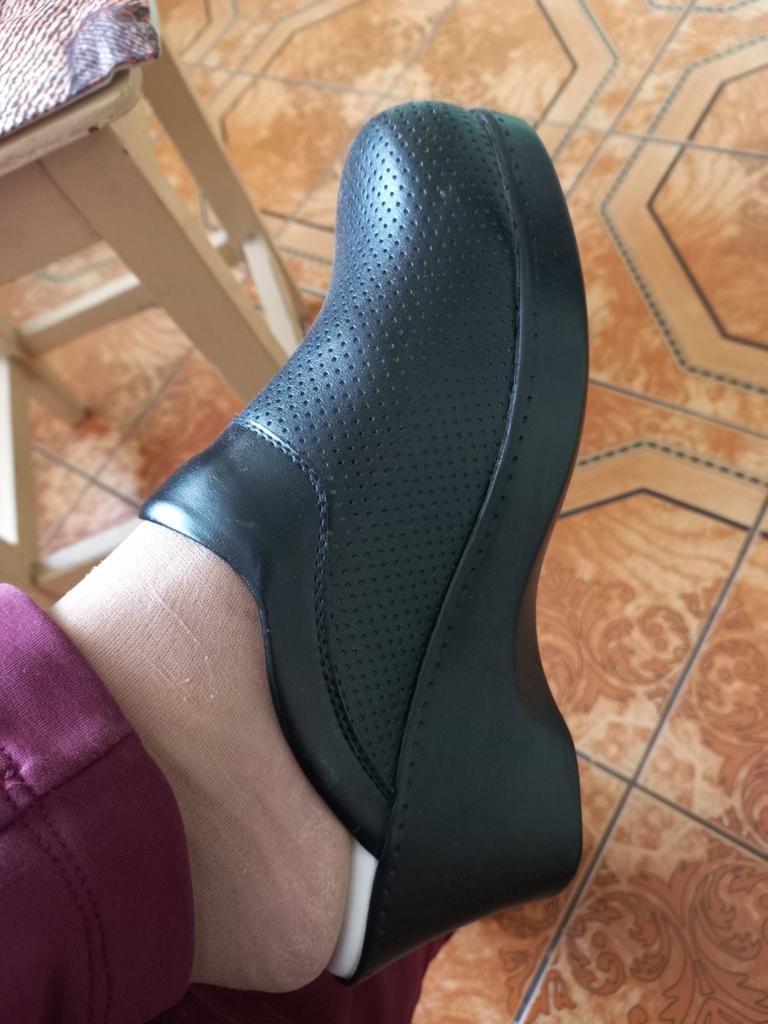 Very comfortable sabulki but on one for some reason the heel goes to the side