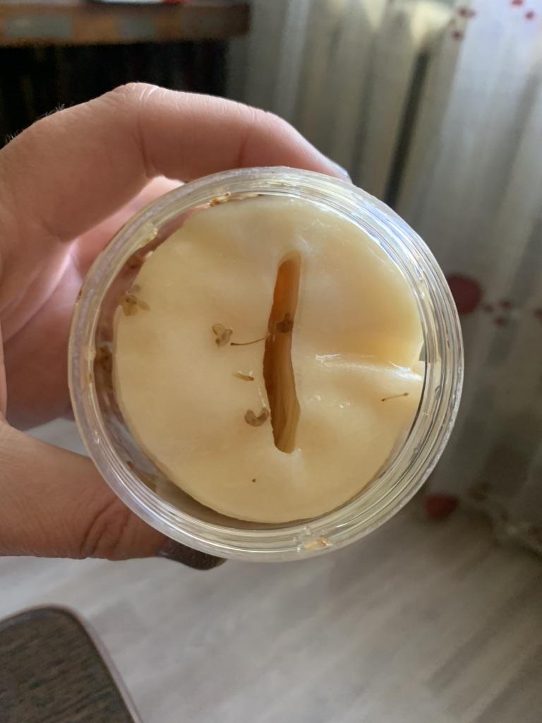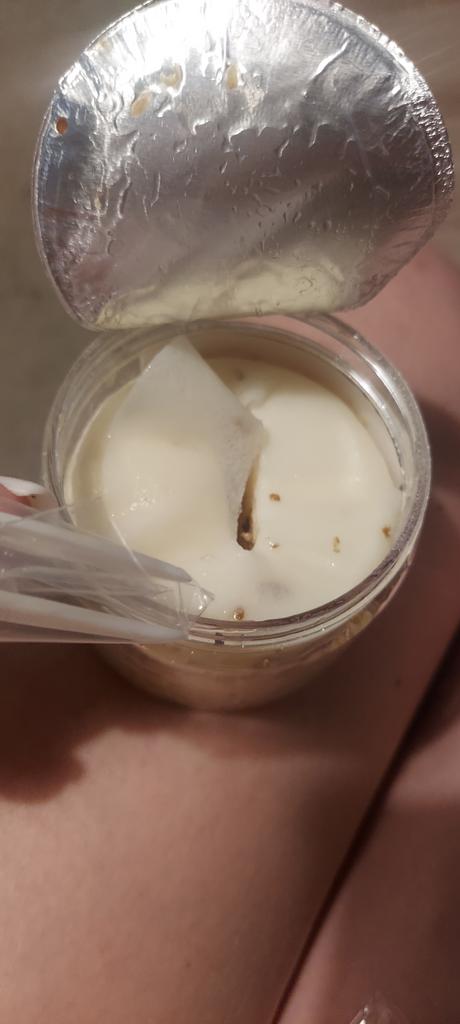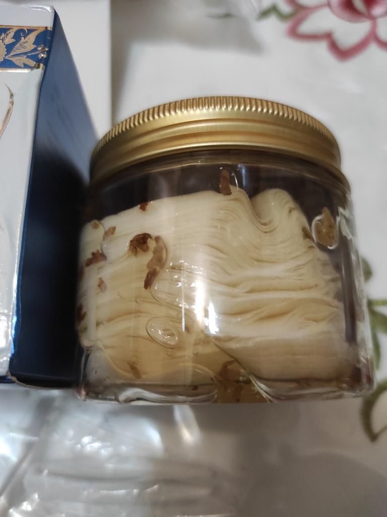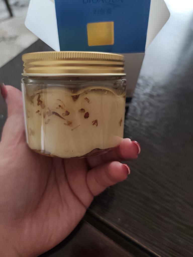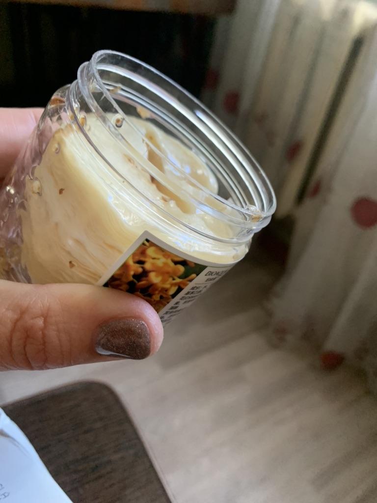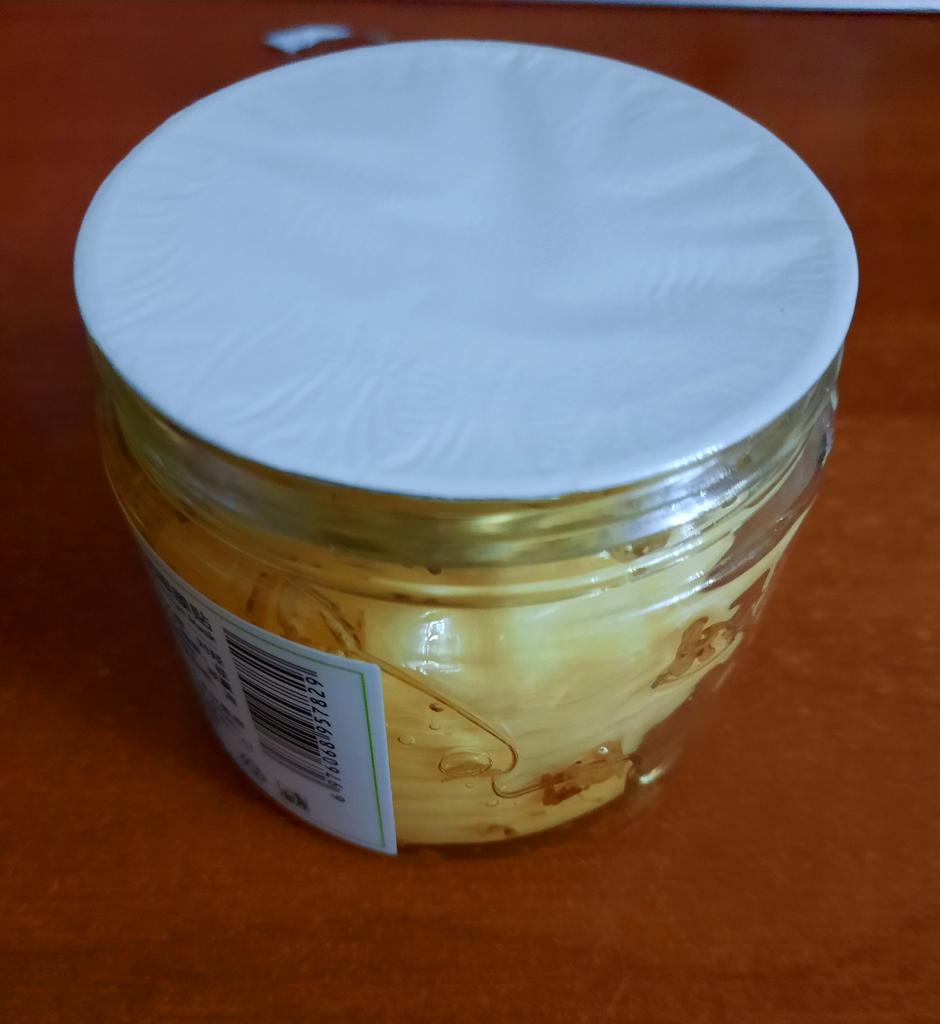 The product arrived in a dented package, I opened the lid of the jar, the protective film was torn, but the contents did not leak out.