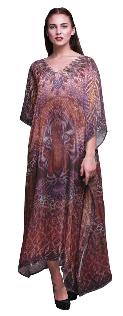 Phagun Tiger Face Animal Beach Kaftan Bikini Cover Up Womena S Maxi Dress Long