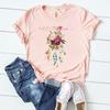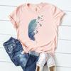 (Asian Size) Watercolor Feather Vintage Bird Women Print Short Sleeve Tee Top Fashion Tshirt Clothing Casual Summer Lady Female Graphic T-shirt