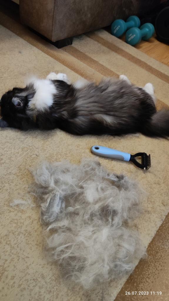 Tried the brush. Just a bamba, albeit a small one. Siobatsi, especially for the first time, did not sleep very well, because it was a bit twitchy. Removes the undercoat. Every day a whole bunch. I recommend It came quite quickly