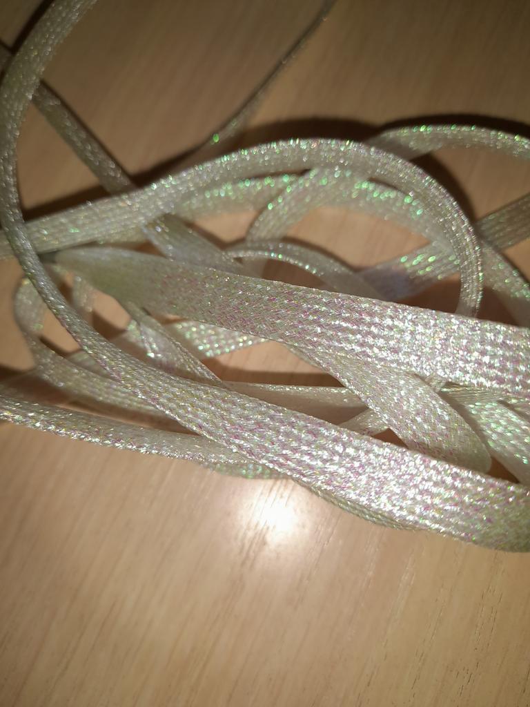 The laces are nice, the length 110cm, you can even wear shoes or a hood. Shiny, beautiful