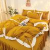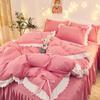 Korean Version of Solid Color Lace Bowknot Bed Skirt Four-piece Bedding Sanding Bed Linen Duvet Cover Double Bed