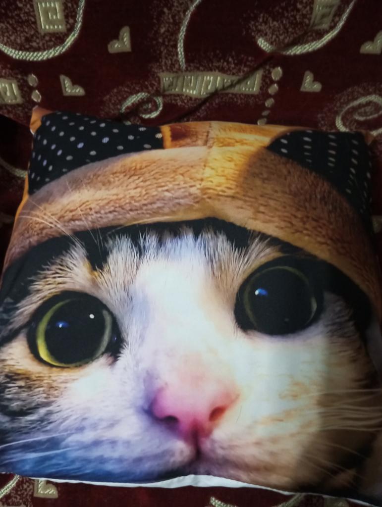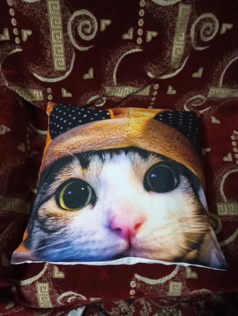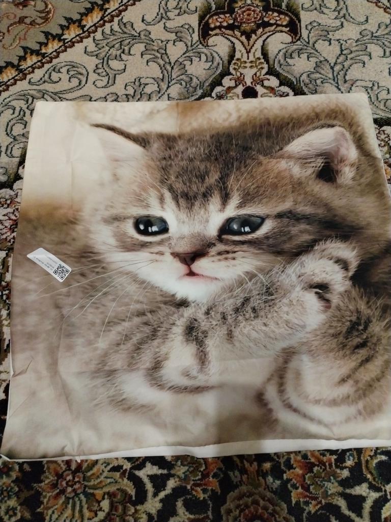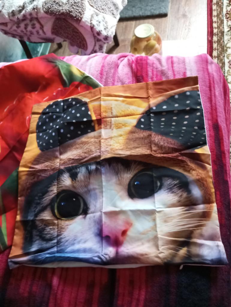 The fabric is pleasant. The photo of the cat is bright