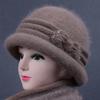 Hat Female Winter Elderly Rabbit Fur Knitted Warm Woolen Bowl Hat Thick Cotton Top Hat