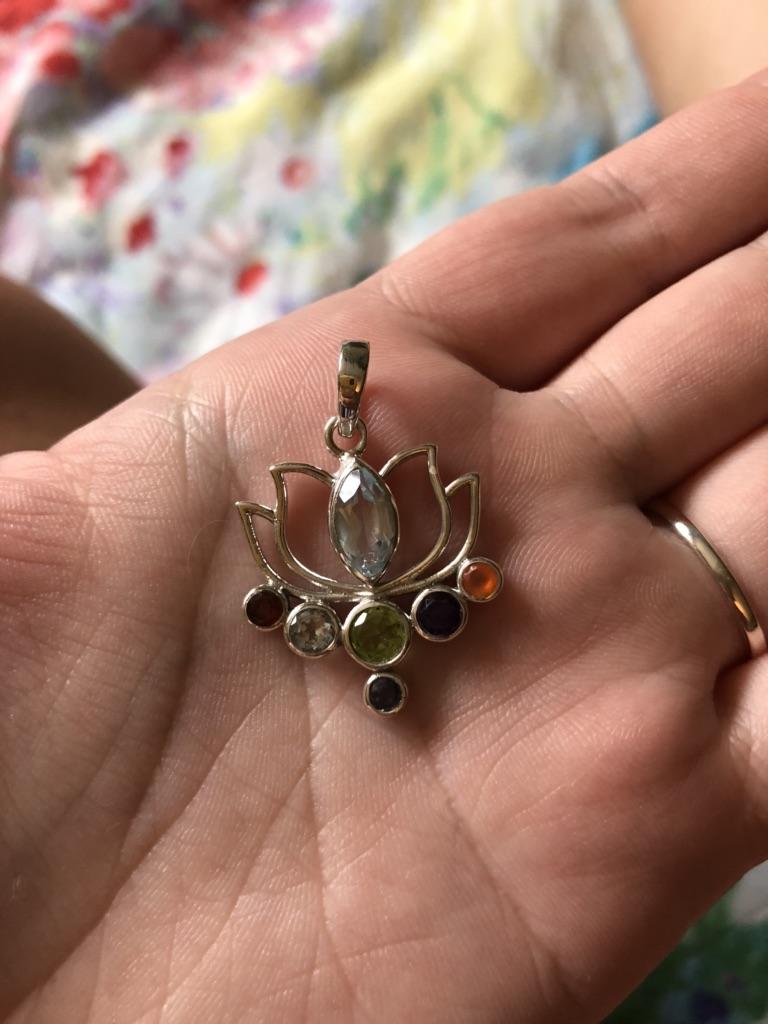 Very beautiful pendant in the form of a lotus and chakras in the form of stones❤💙💚💜🧡💛💗