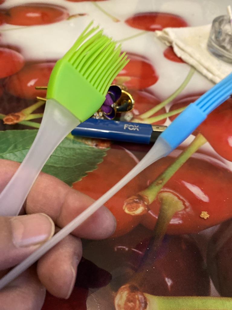 Good soft silicone brush, not small, about a tablespoon in length and 2-2.5 cm in width