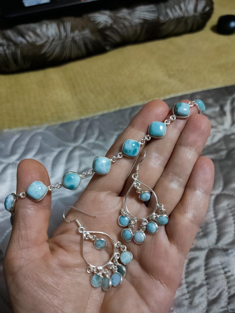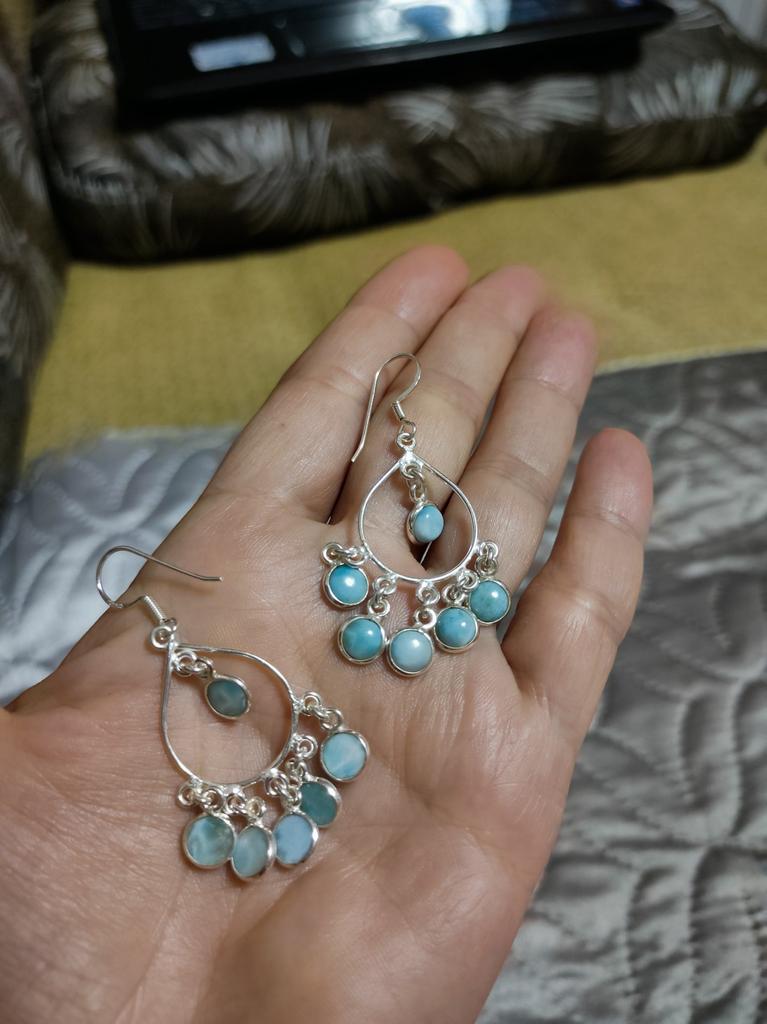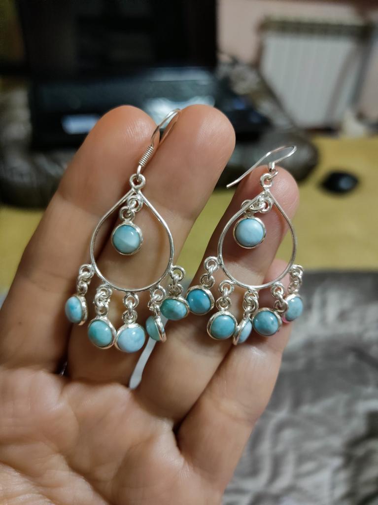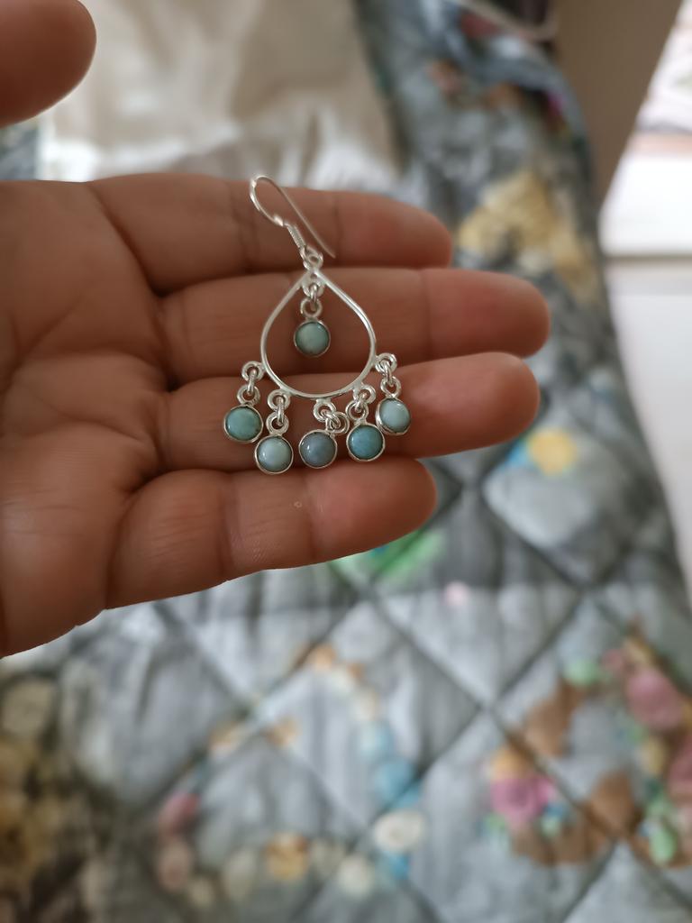 Natural Larimar Gemstone 925 Sterling Silver Chandelier Dangle Earring