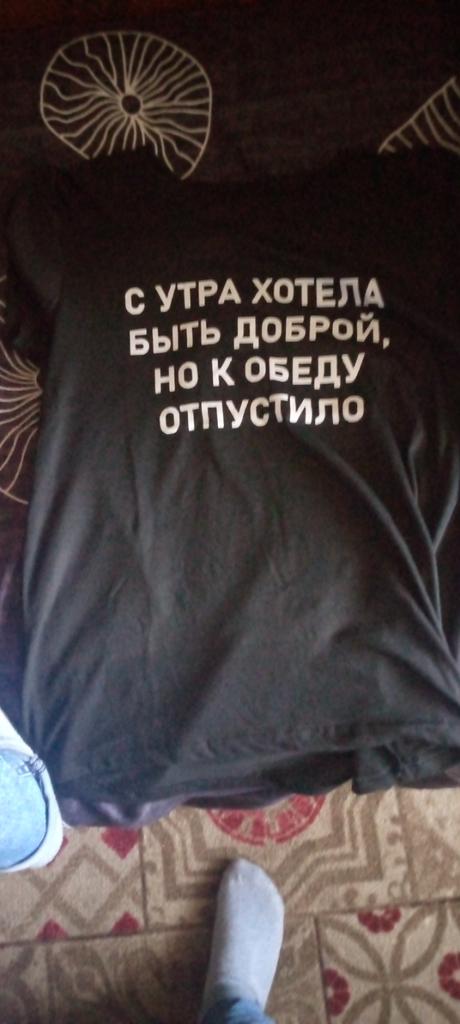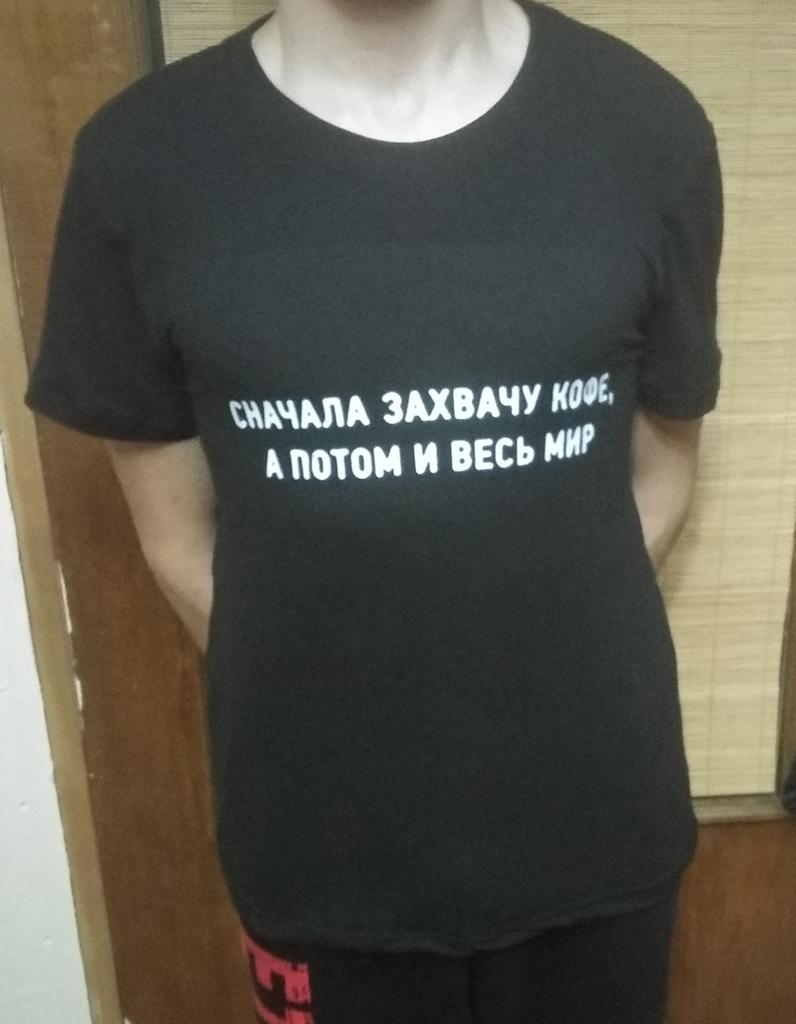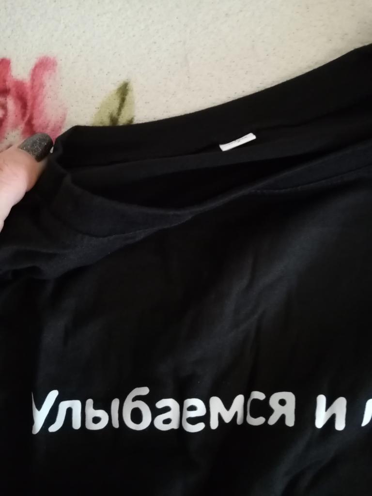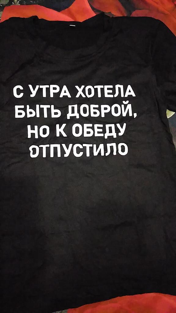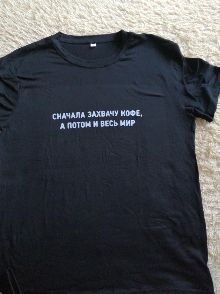 Cool T-shirt. Bought as a gift for a teenage girl. The inscription is combined with the character and style of behavior. Very soft jersey. The letters are printed clearly, without blurring. Fully corresponds to the size chart. Large selection of labels. I recommend to buy.