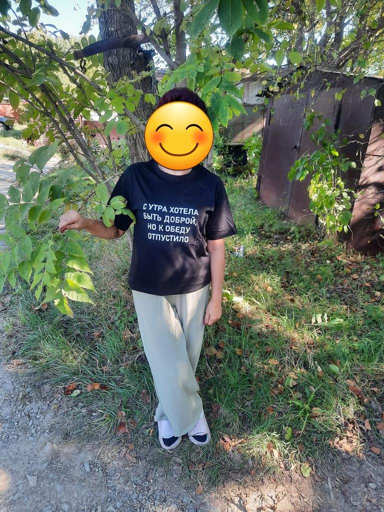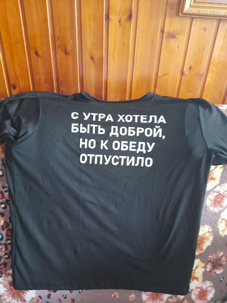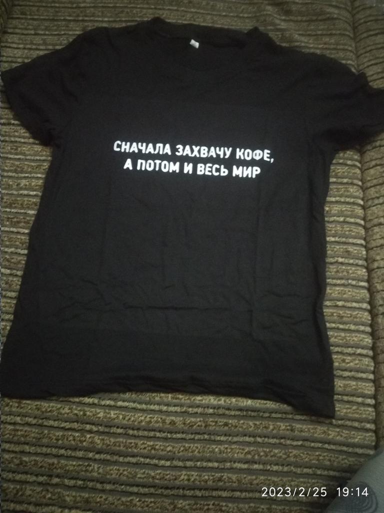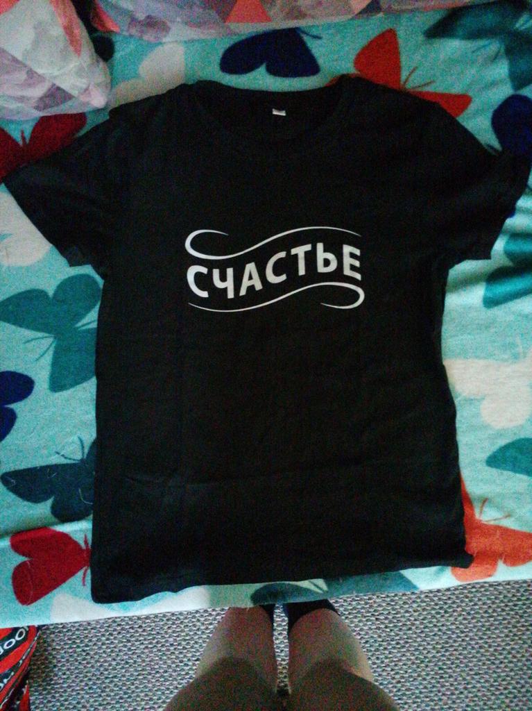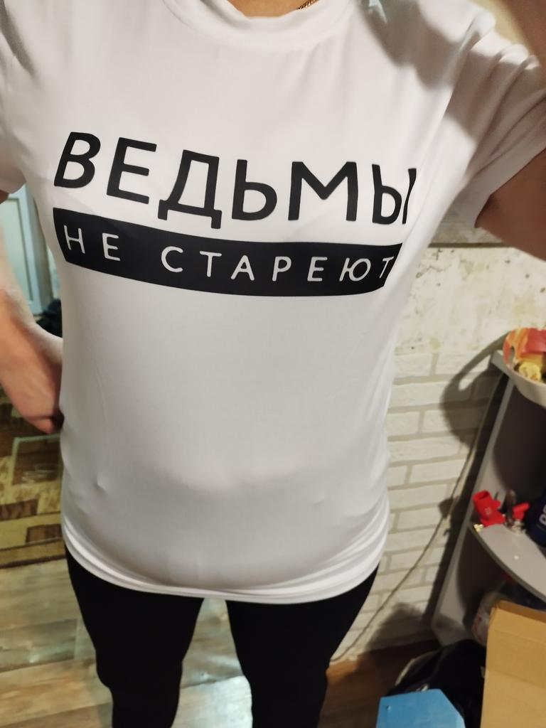 Cool T-shirt. Bought as a gift for a teenage girl. The inscription is combined with the character and style of behavior. Very soft jersey. The letters are printed clearly, without blurring. Fully corresponds to the size chart. Large selection of labels. I recommend to buy.