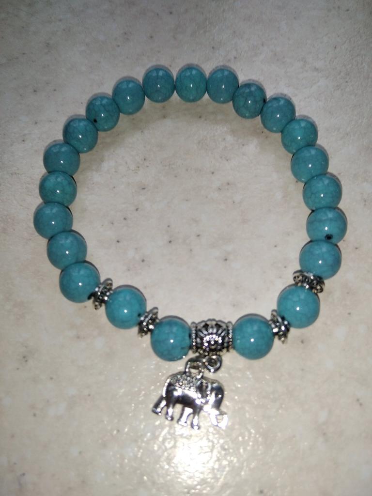 Ethnic Women Elephant Charm Faux Turquoise Beaded Bracelet Elastic Bangle Gift