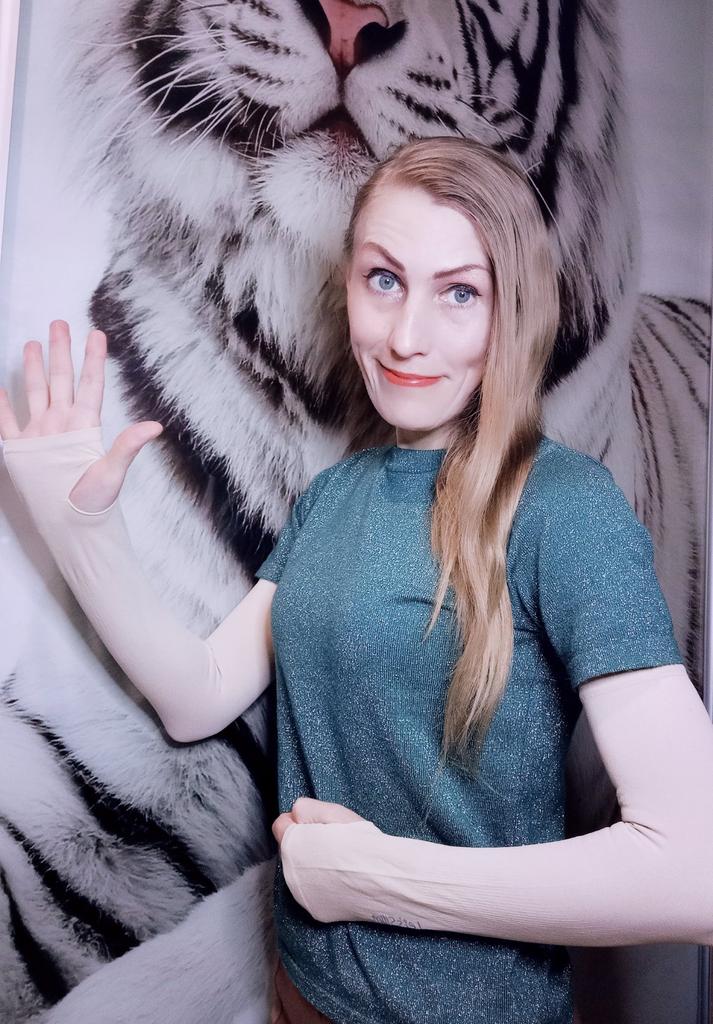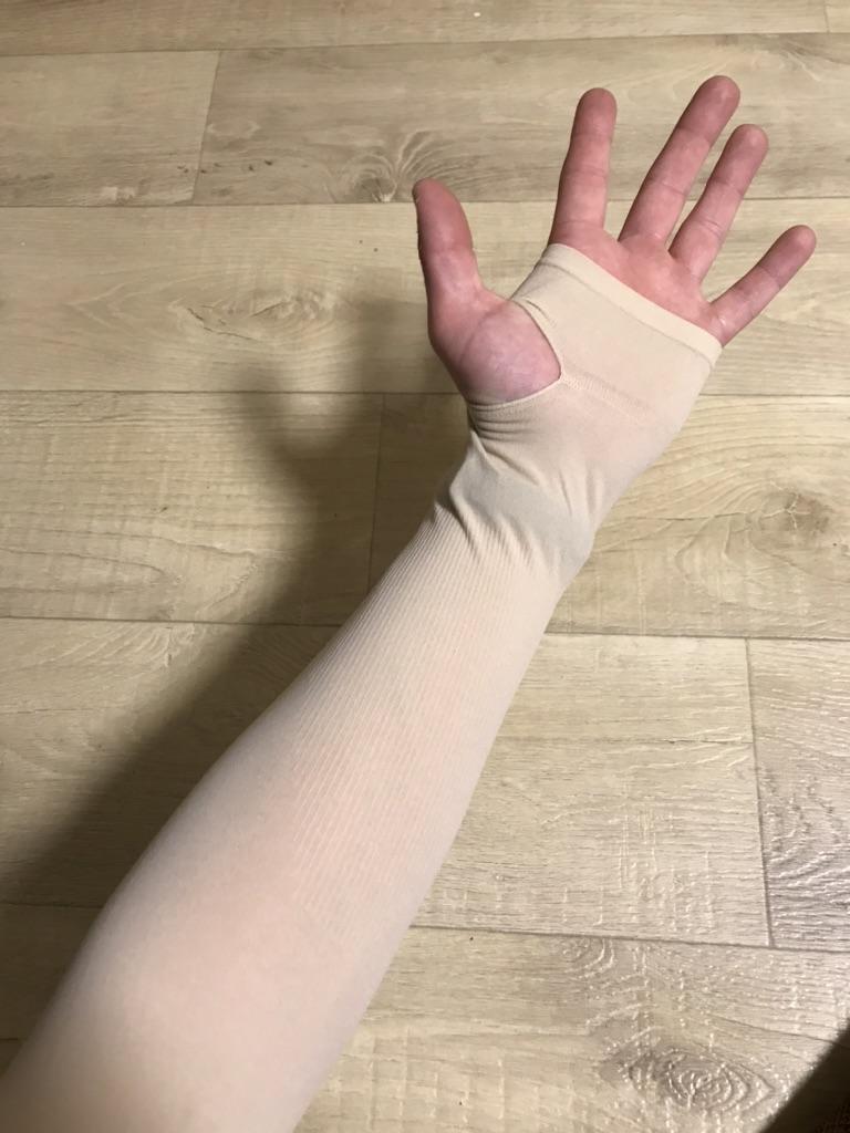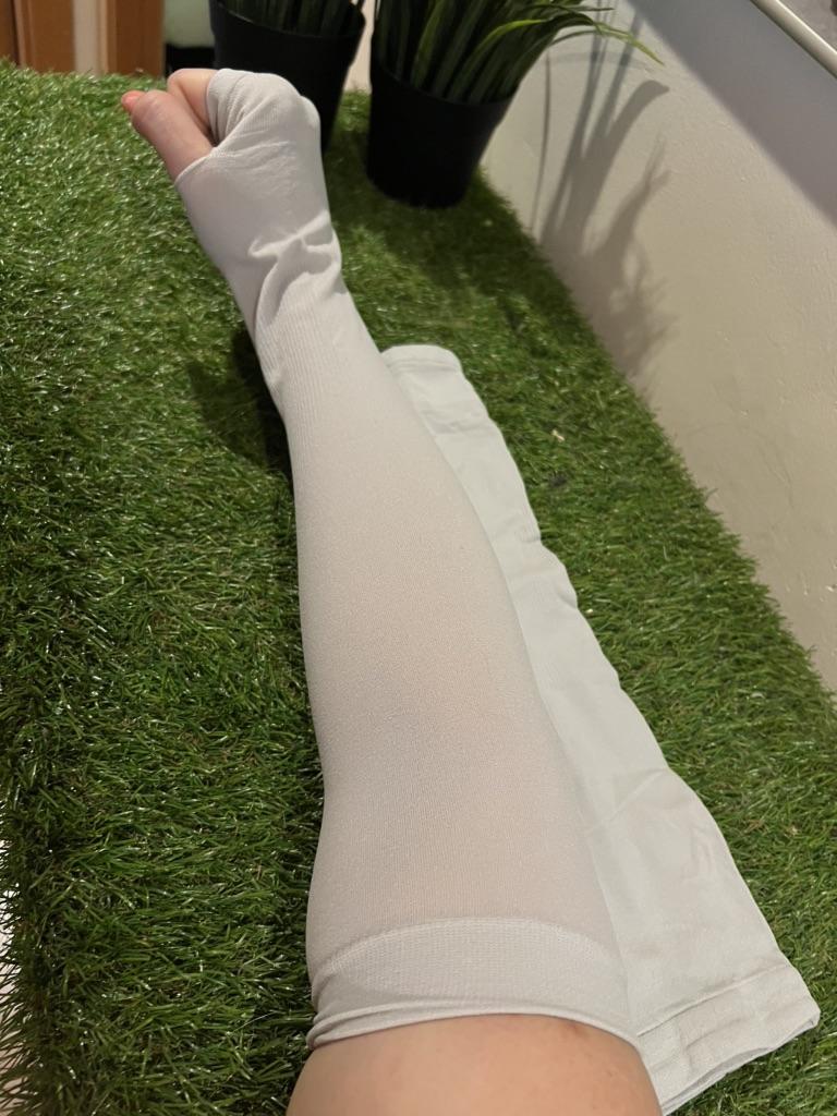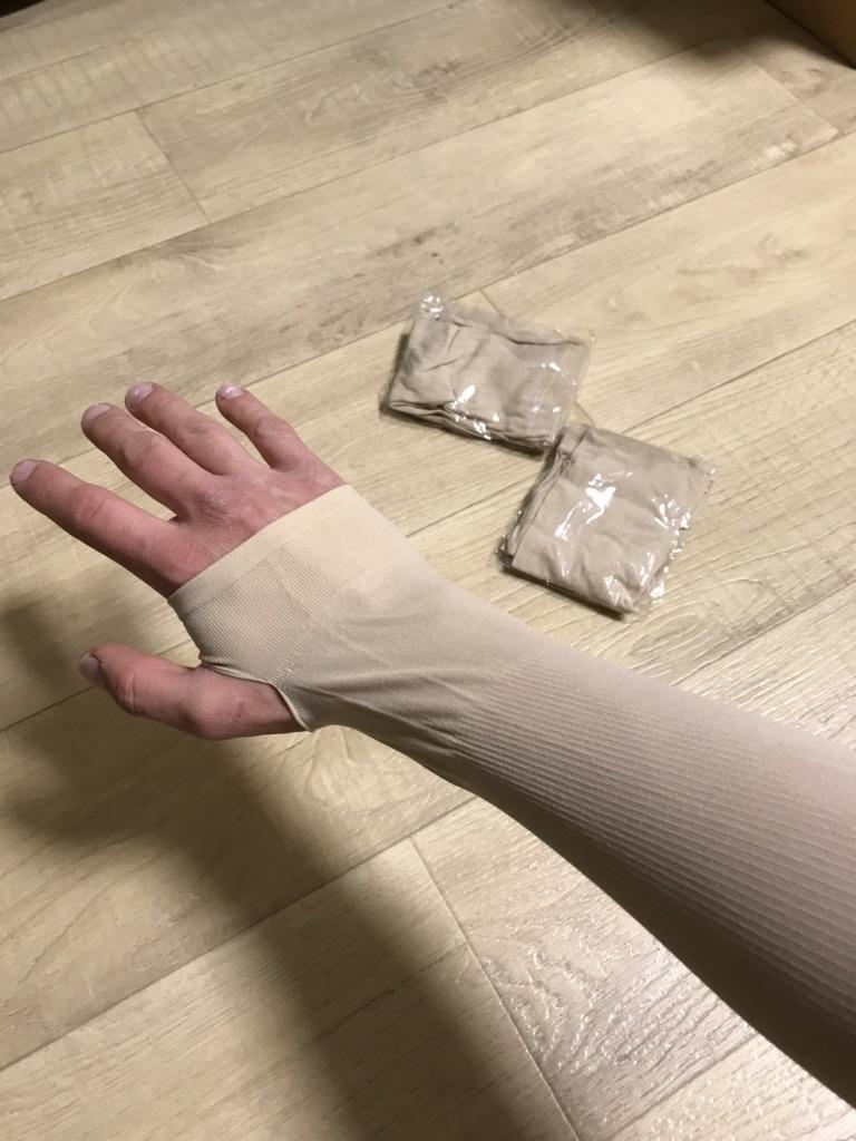 I bought these arm sleeves before in grey. They are great!! Protect well against UV sun ☀️ rays. I use them every day. Even when the weather is hot, it's comfortable to use. They are made of a light and breathable stretch fabric. This is the skin colour. Also available in other colours! The package arrived in 3 weeks at home, 3 pairs in one order! 👍👍👍