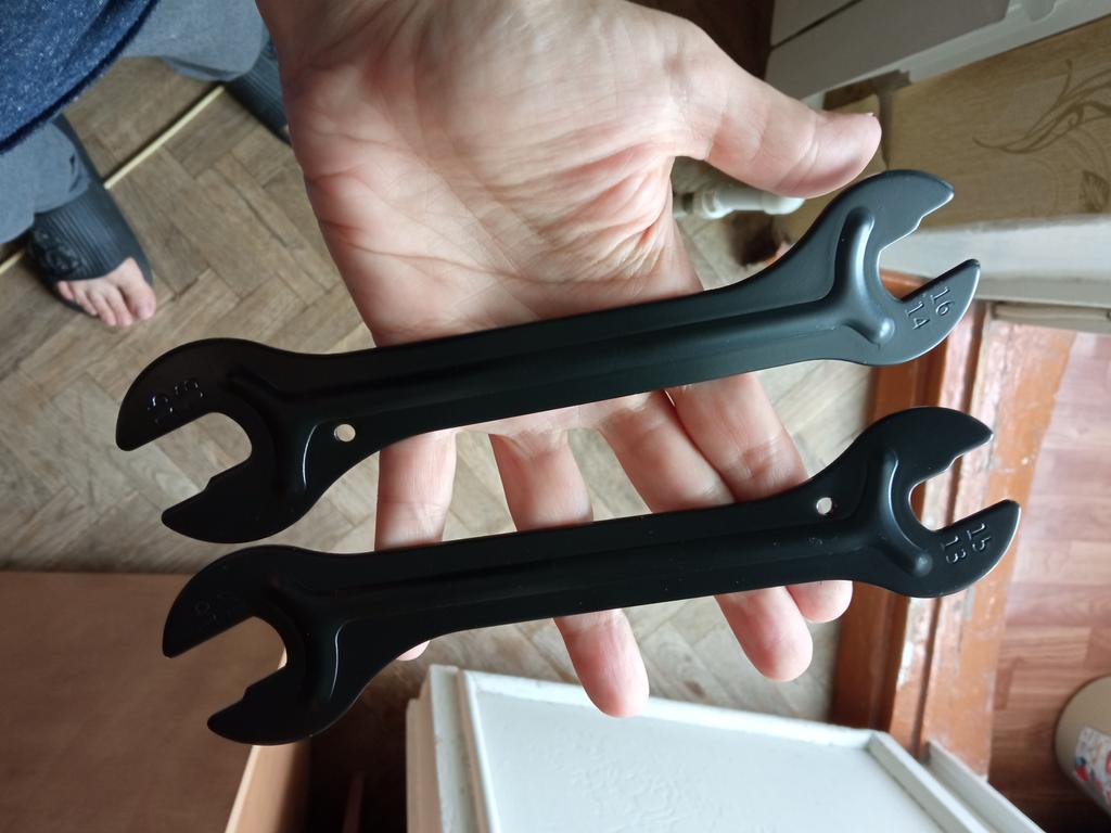 🔧2 bike wrenches 🔧Very thin - yet very stable 🔧Both keys identical 13-16 nut 🔧Ideal especially for mountain bikes and sporty ones wheels 🔧Fast delivery and good goods 👍
