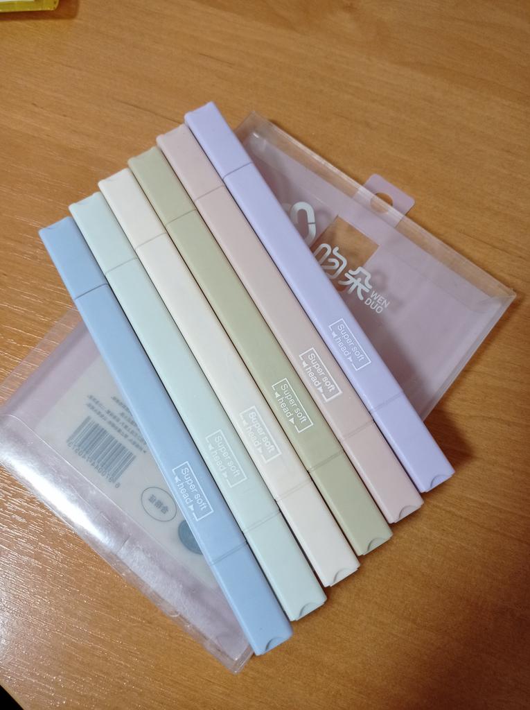 The package arrived. Text highlighters are not ordinary square, the colors are not ordinary, they highlight very well. I recommend!