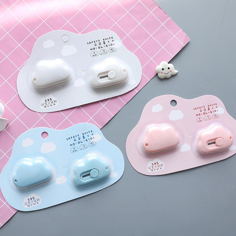 2pcs Mini Cloud Utility Knife Automatic Rebound 9mm Steel Blade Paper Cutter Opener for Letter Box Wrapping Cutting School