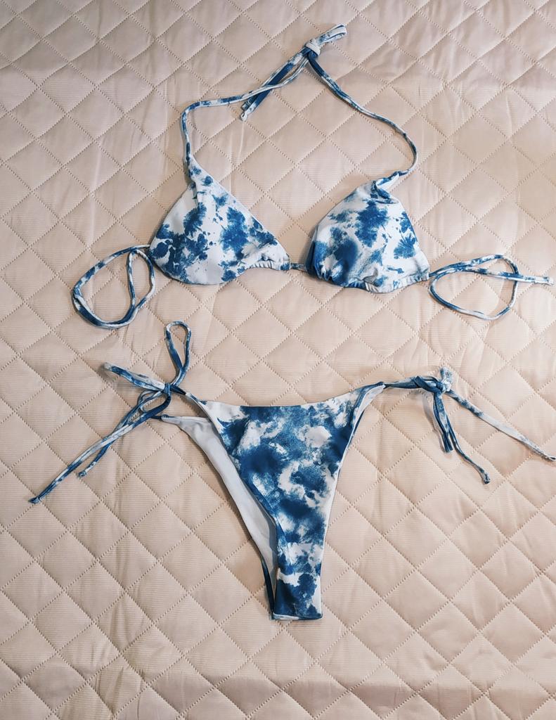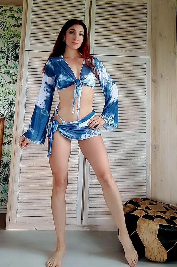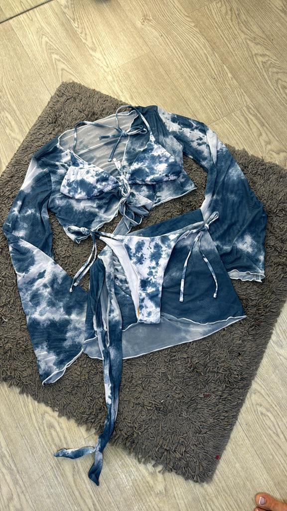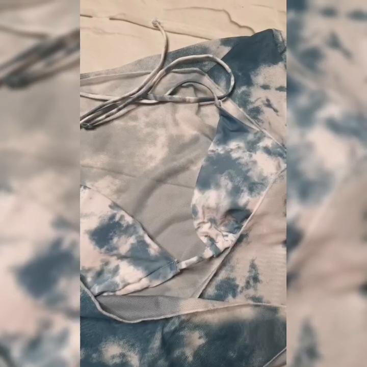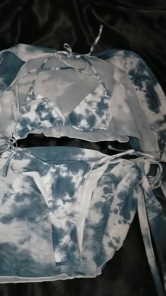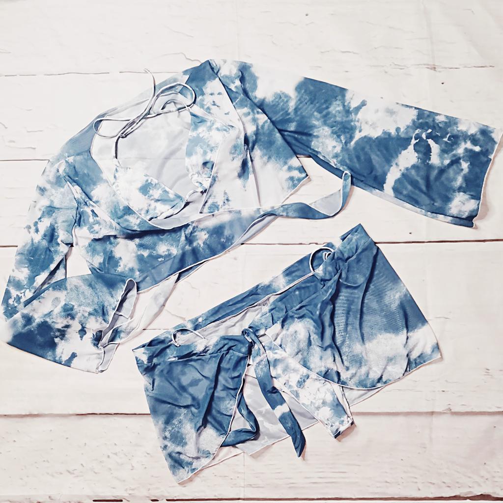 Tie Dye Long Sleeve Bikini Female Swimsuit Women Swimwear Four-pieces Bikini Set Sarong Halter Bather Bathing Suit Swim