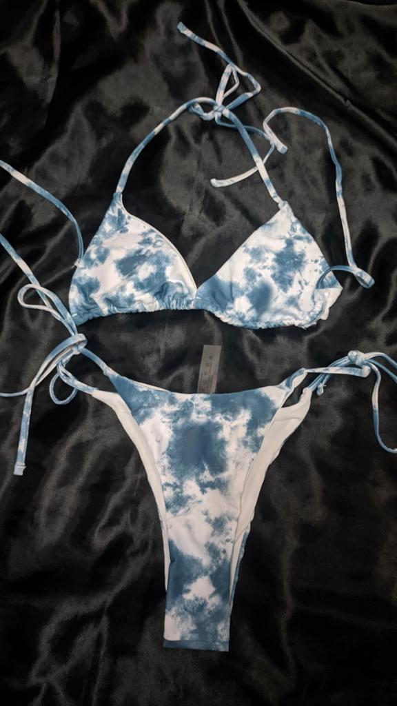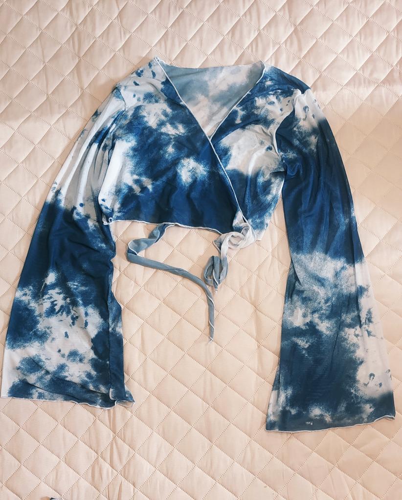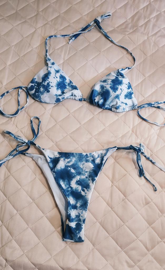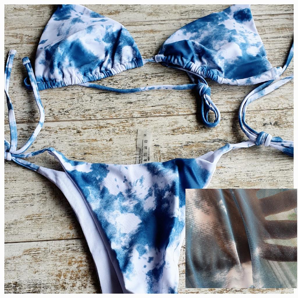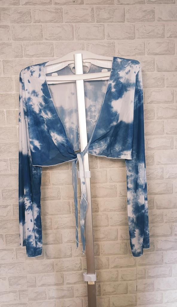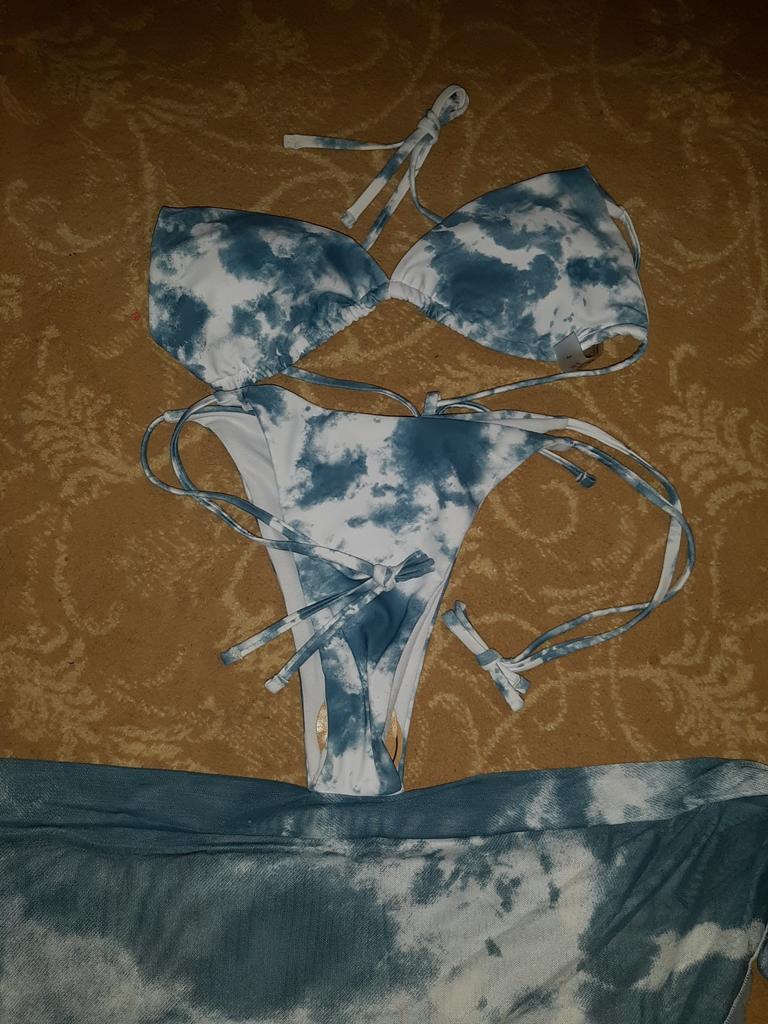Tie Dye Long Sleeve Bikini Female Swimsuit Women Swimwear Four-pieces Bikini Set Sarong Halter Bather Bathing Suit Swim