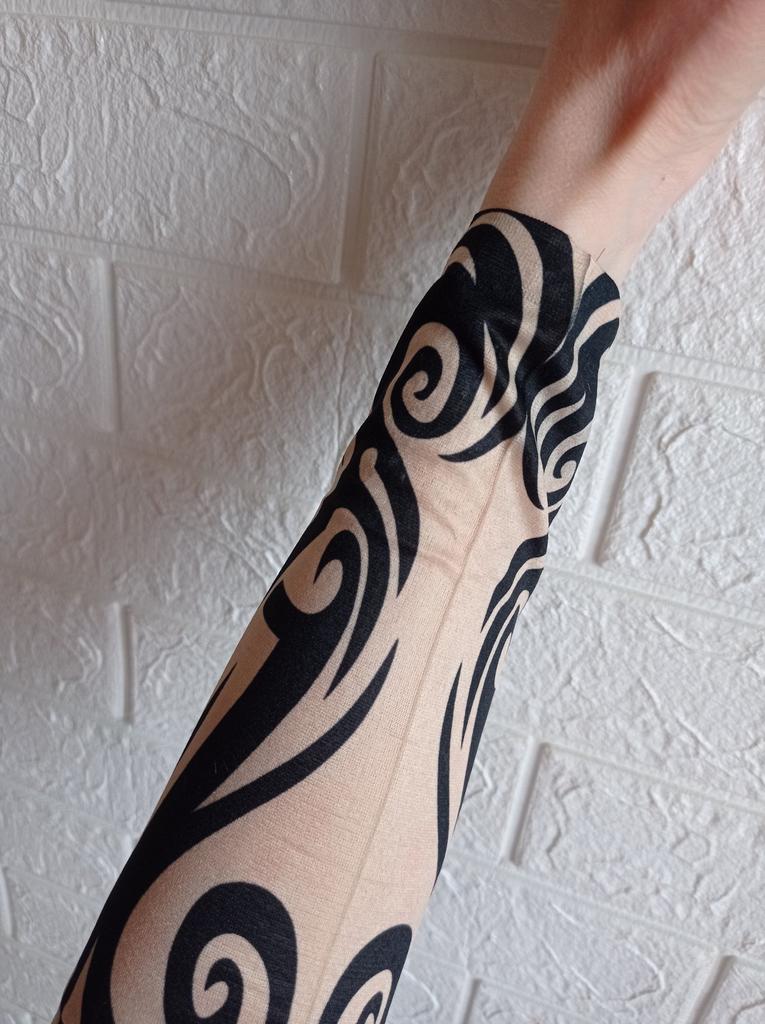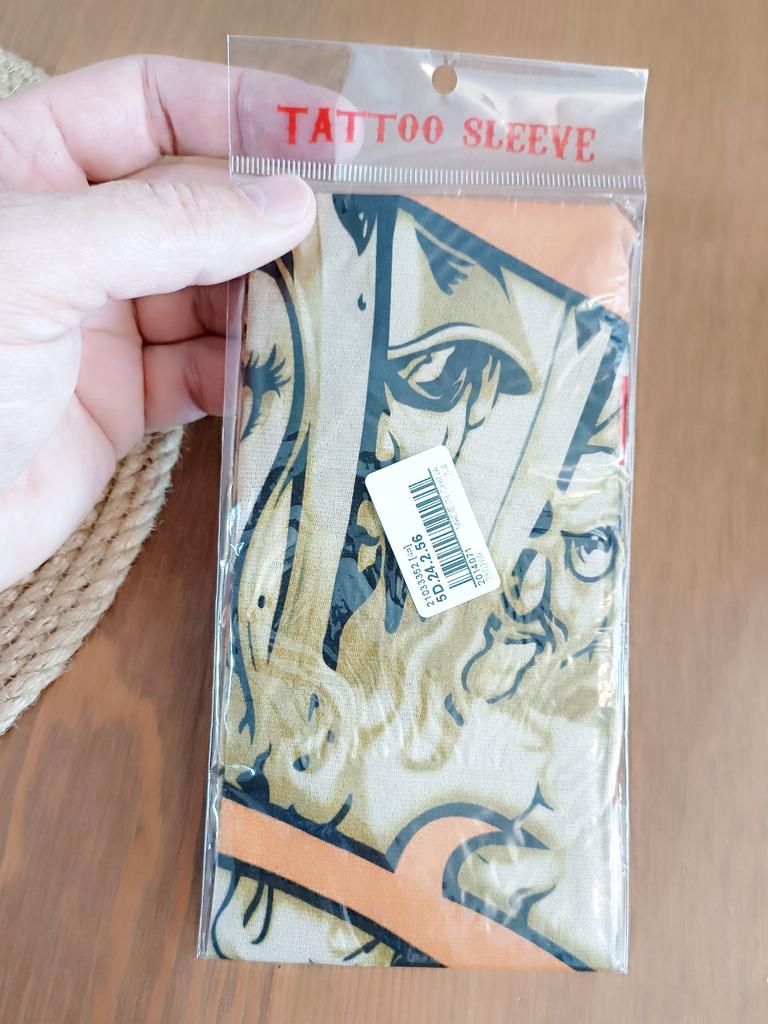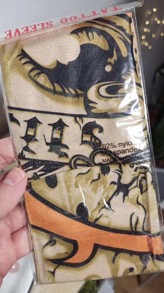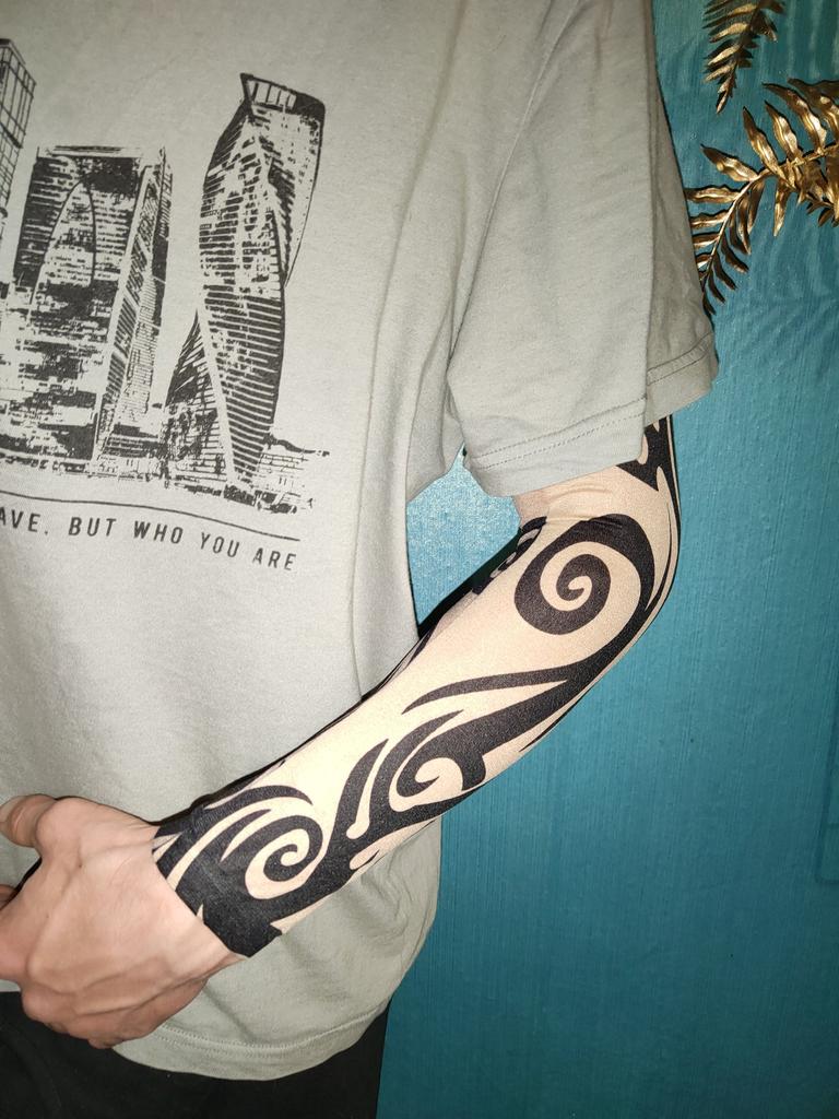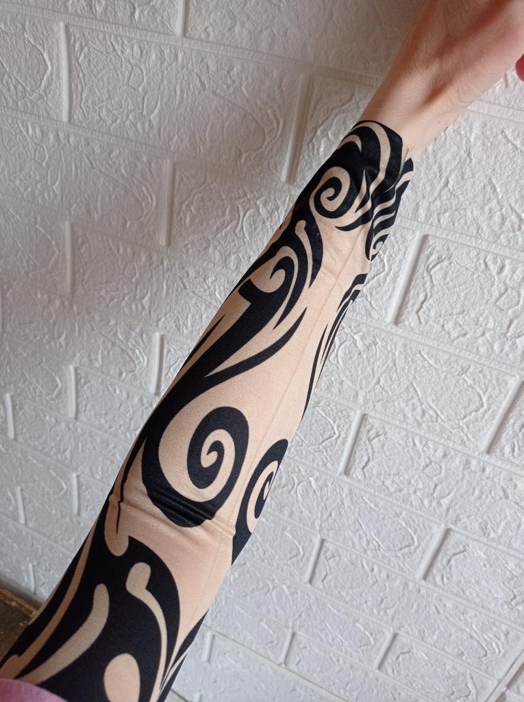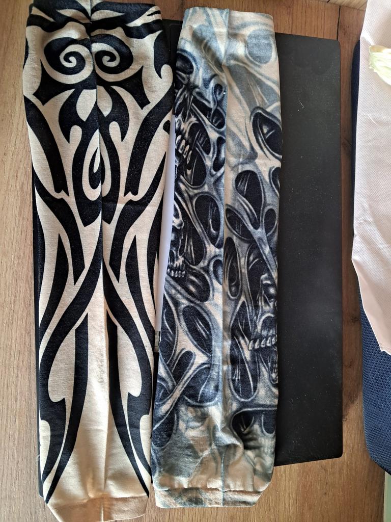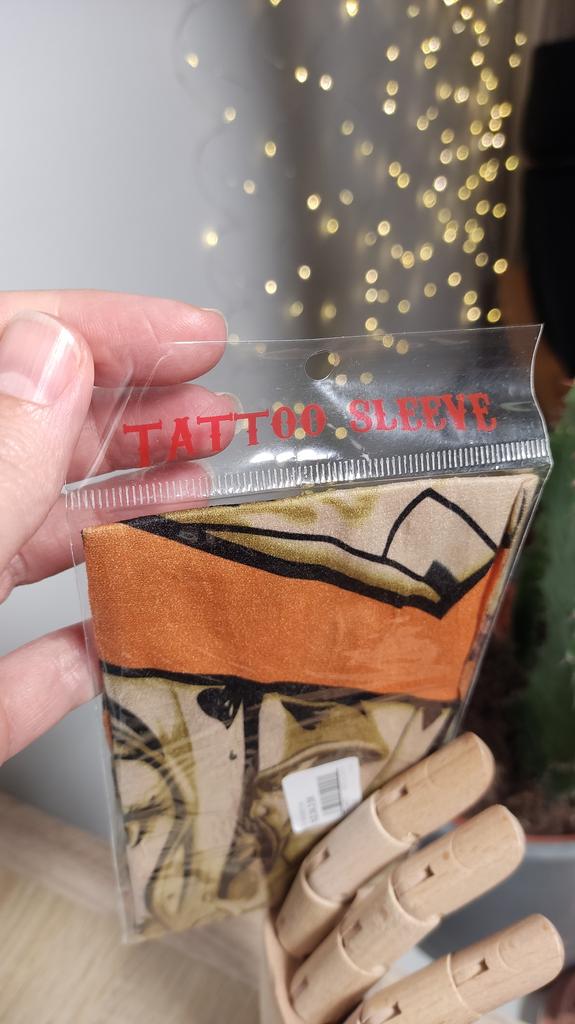 Me and my husband always need good equipment for photo shoots. We chose this tattoo cuff. We really like the fake tattoo. Combined correctly, it is not even noticeable that it is fake. My husband also uses the cuff for sports. The material is soft and high quality. It fits any arm. So it's variable. Shipping took 3 weeks. The packaging was good. 5⭐️
