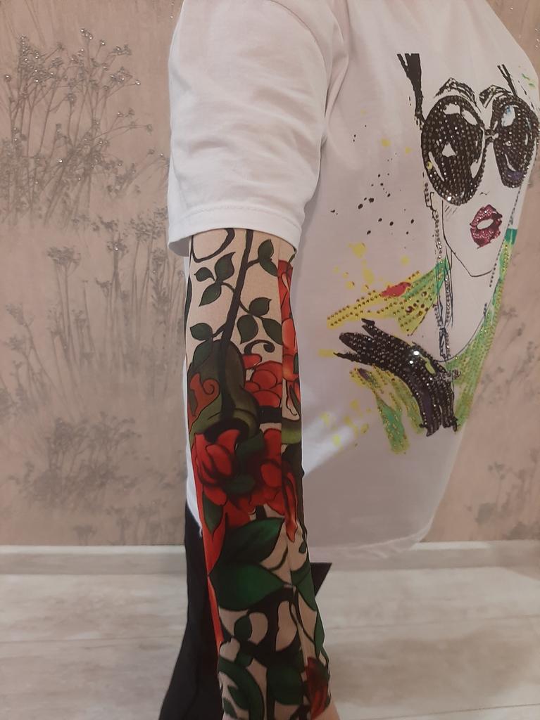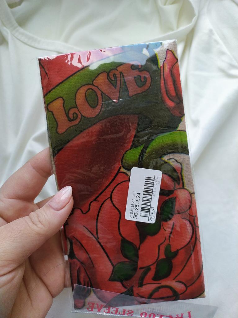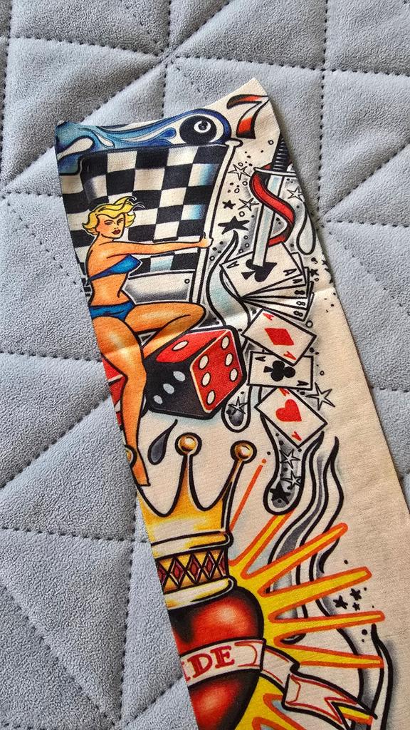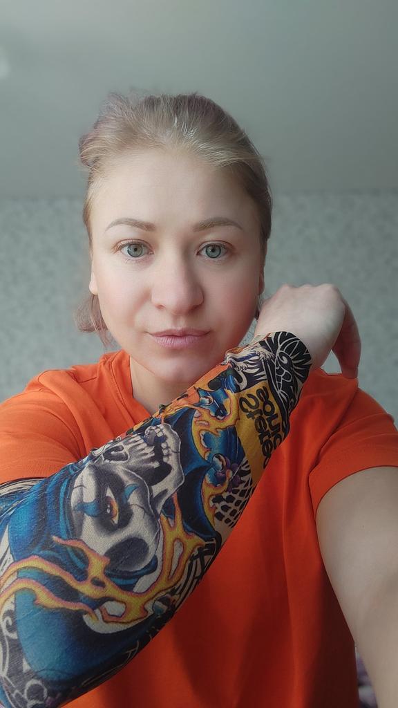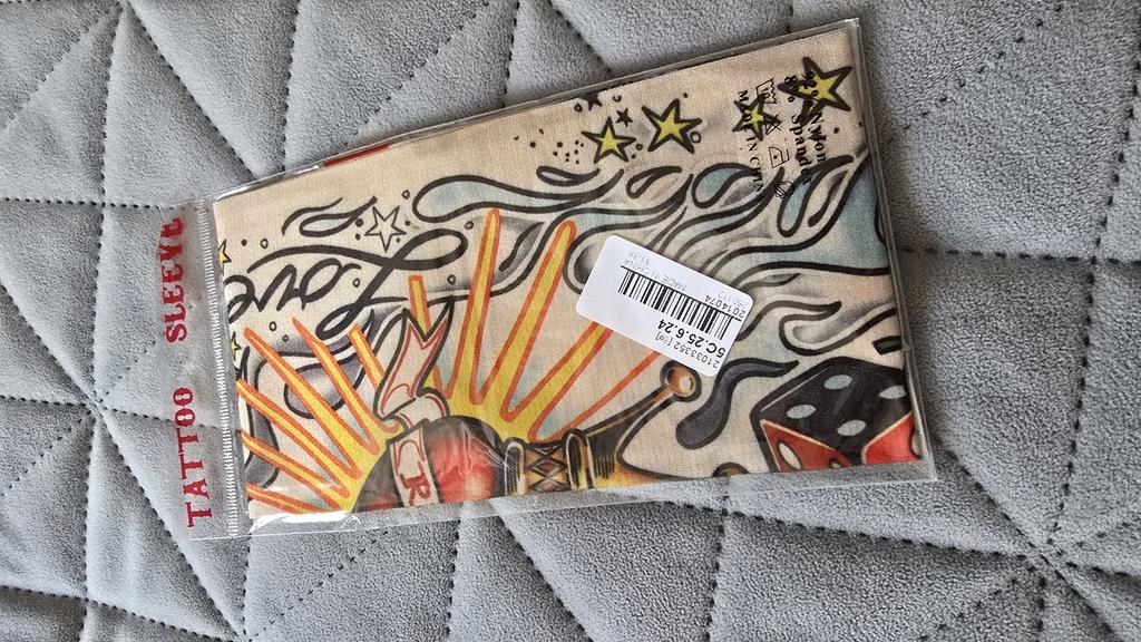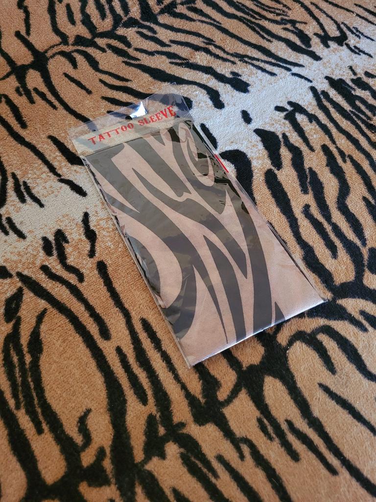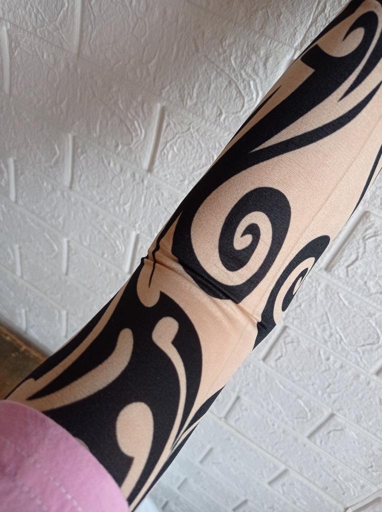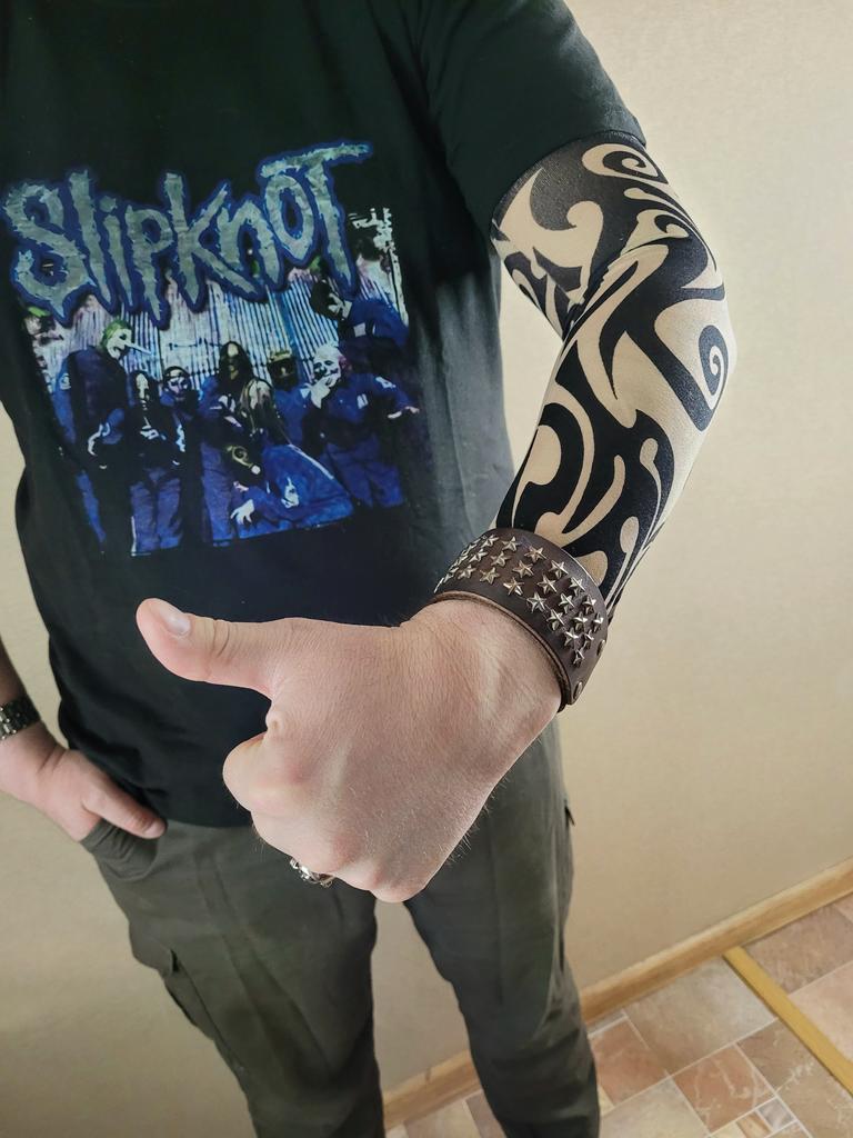 Me and my husband always need good equipment for photo shoots. We chose this tattoo cuff. We really like the fake tattoo. Combined correctly, it is not even noticeable that it is fake. My husband also uses the cuff for sports. The material is soft and high quality. It fits any arm. So it's variable. Shipping took 3 weeks. The packaging was good. 5⭐️