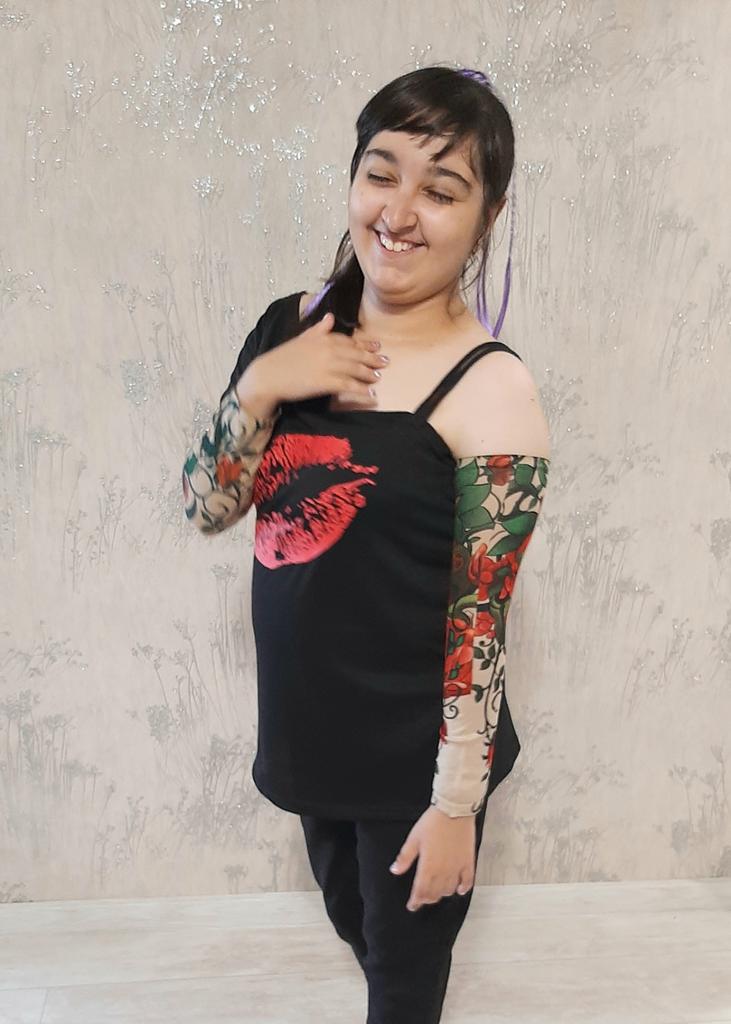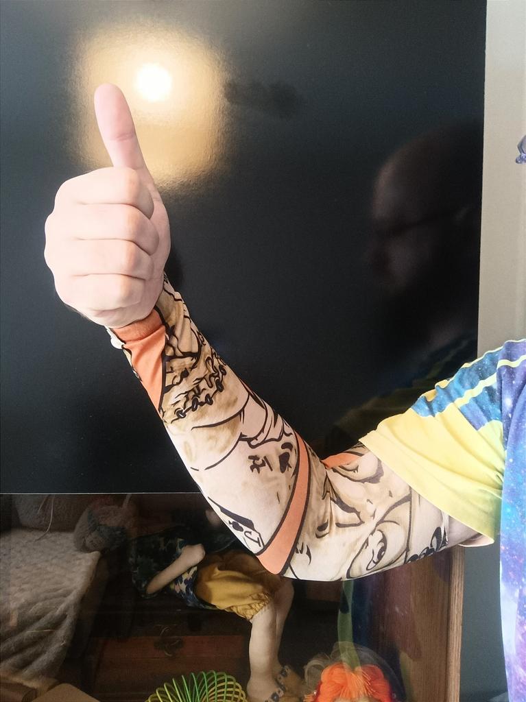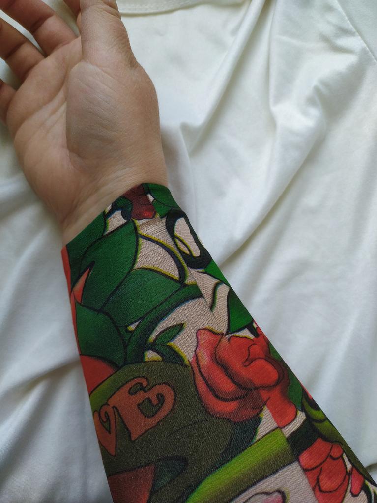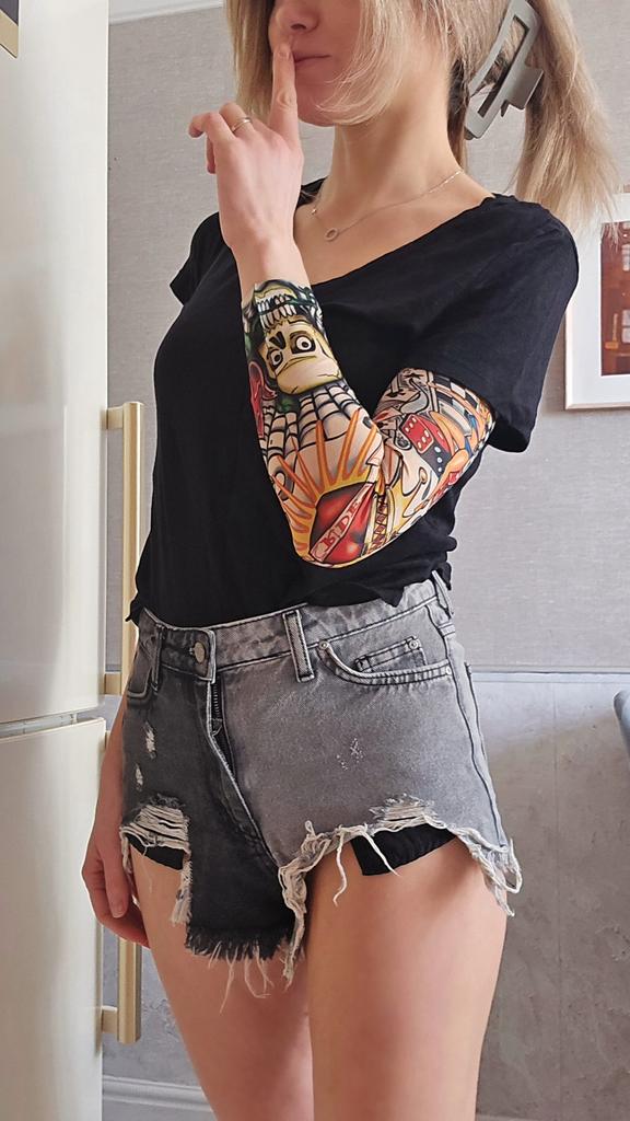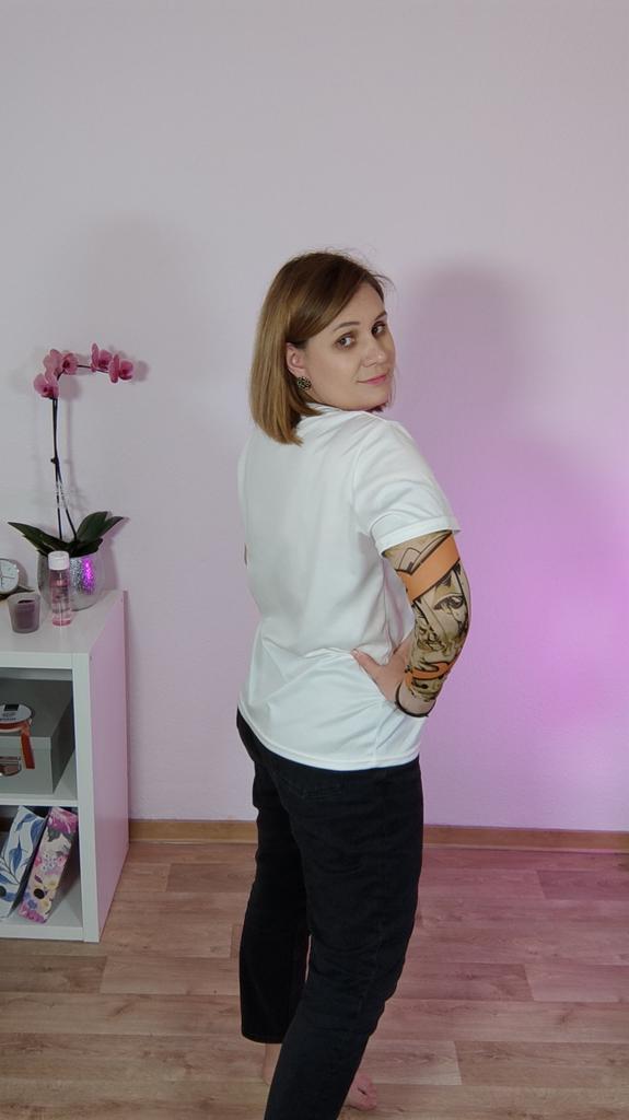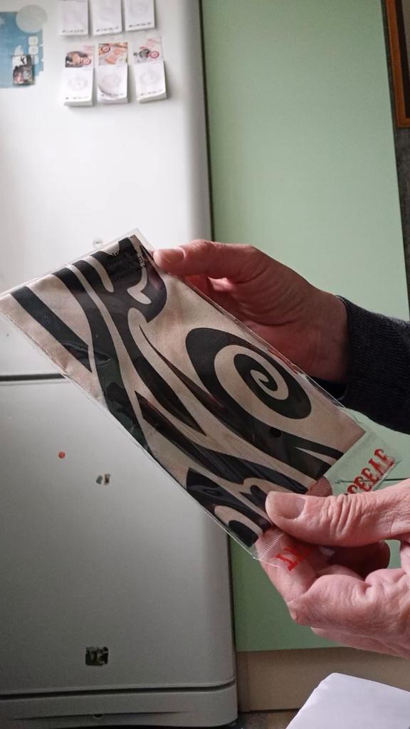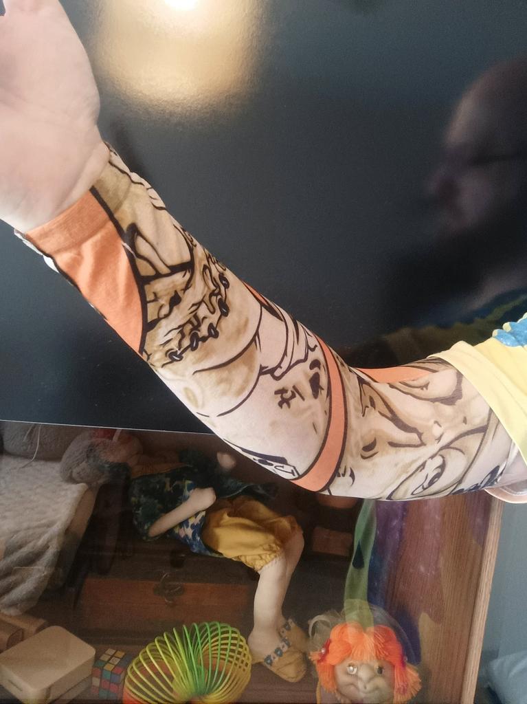 Me and my husband always need good equipment for photo shoots. We chose this tattoo cuff. We really like the fake tattoo. Combined correctly, it is not even noticeable that it is fake. My husband also uses the cuff for sports. The material is soft and high quality. It fits any arm. So it's variable. Shipping took 3 weeks. The packaging was good. 5⭐️
