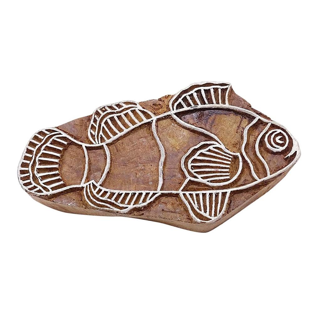 Indian Fish Border Stamp Handcarved Stamp Brown Textile Printing Block