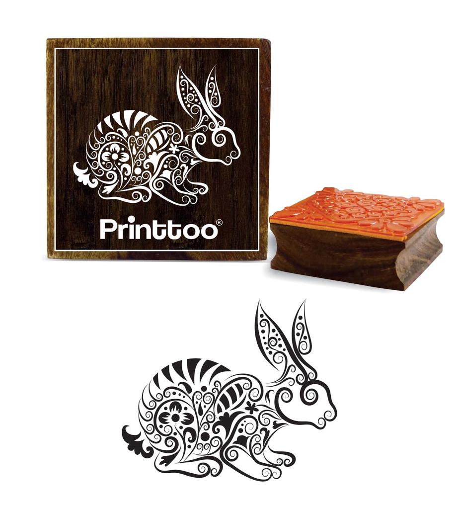 Printtoo Craft Textile Rabbit Pattern Square Wooden Rubber Stamp Scrap-booking-2 X 2