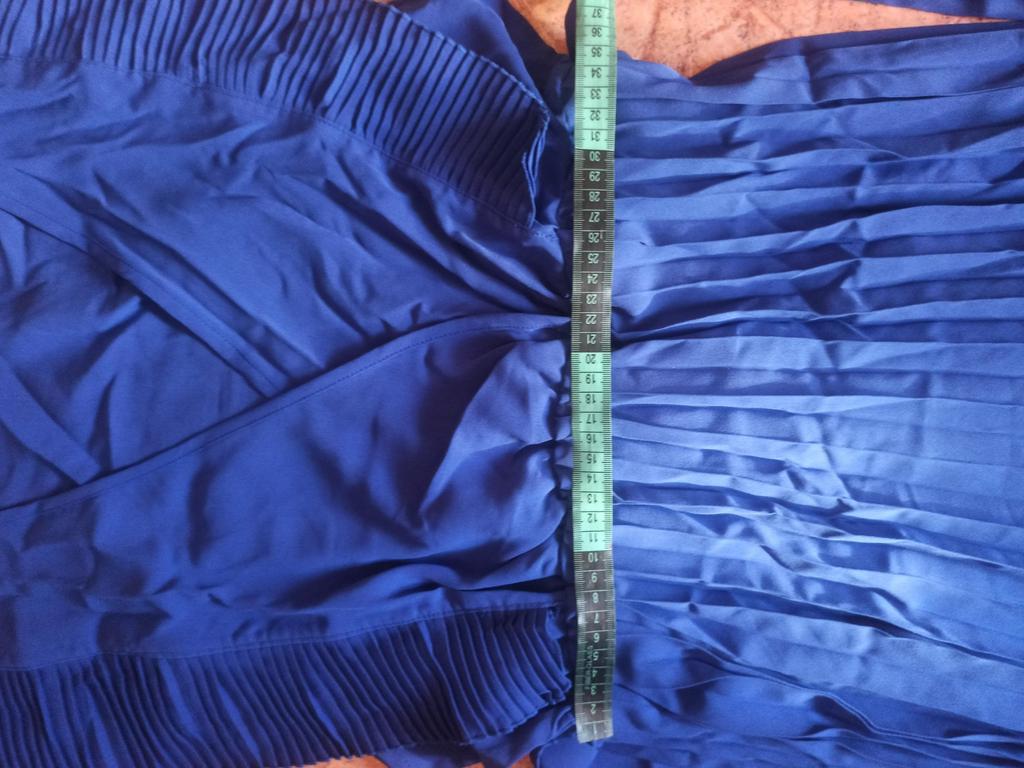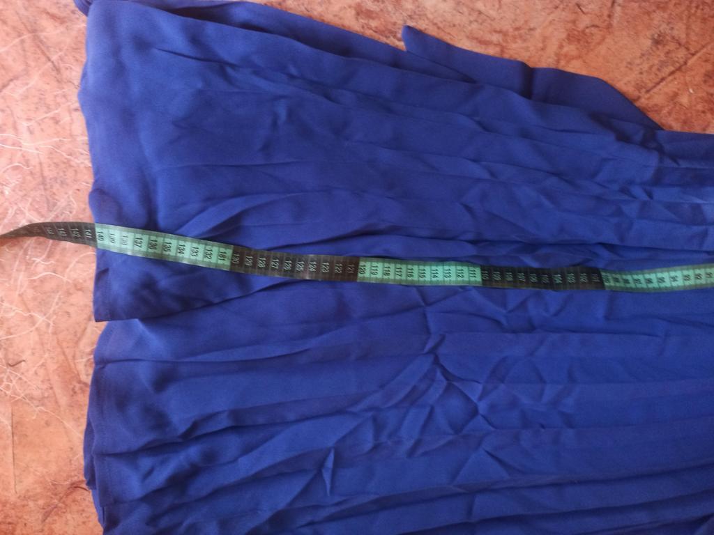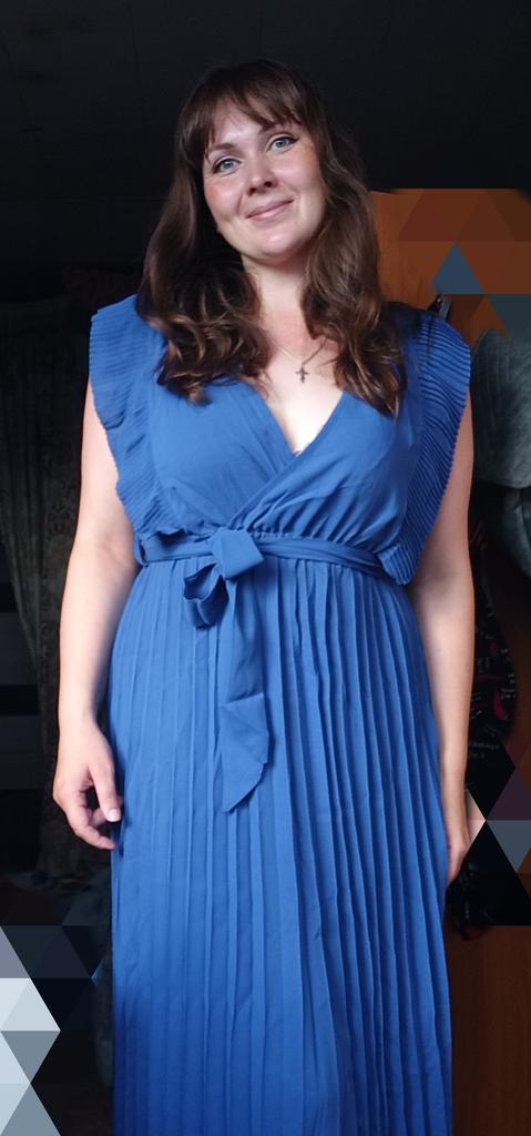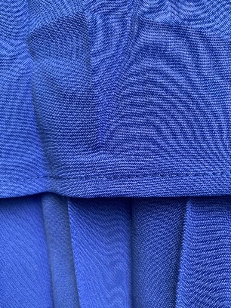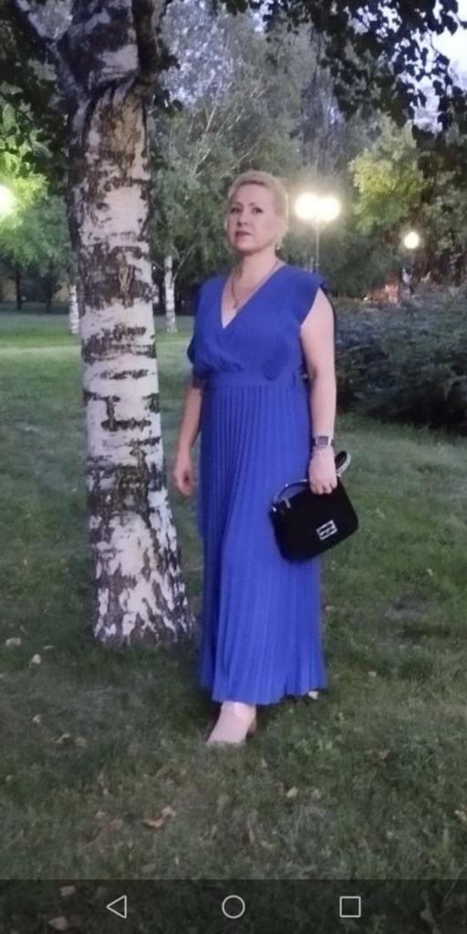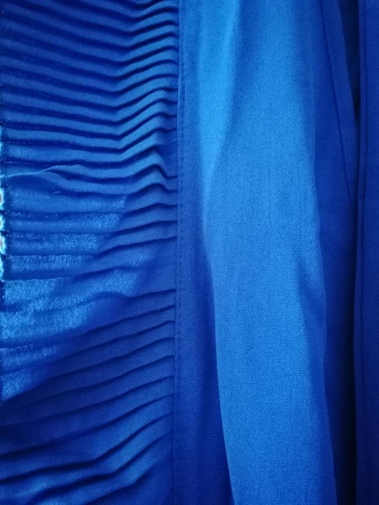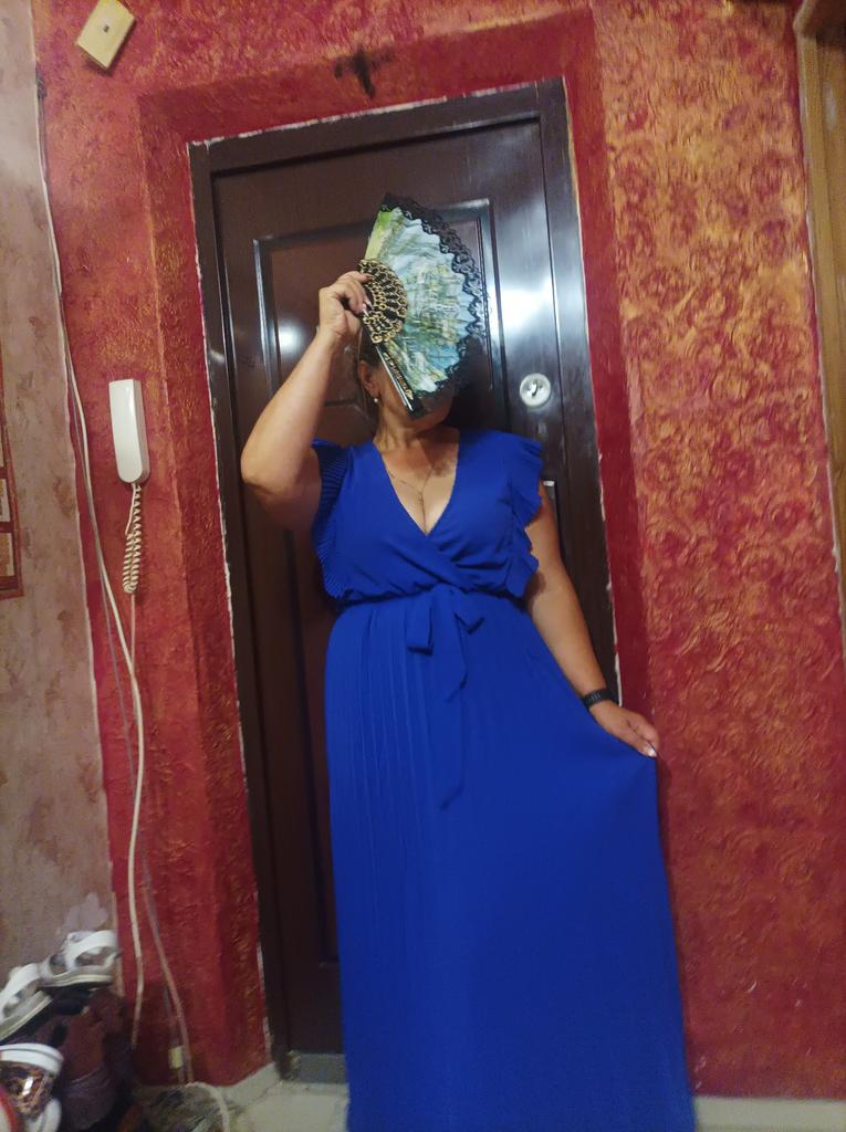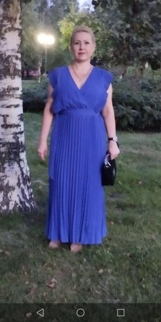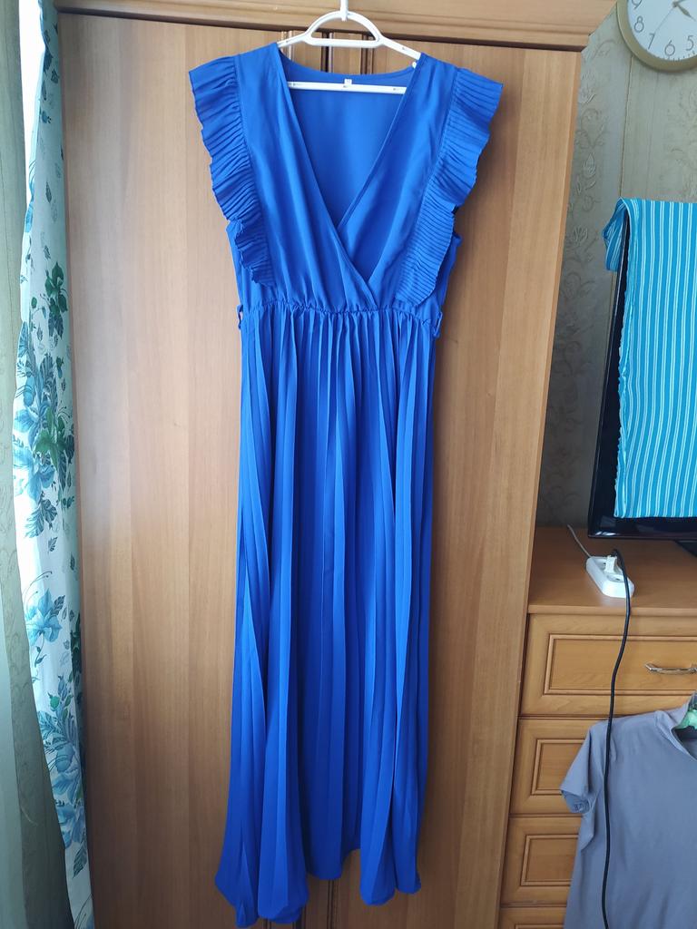 The dress is wonderful, the size is right, the color is deep blue, I have already removed the length. All that remains is to steam it, the fabric is thick, it holds its shape well