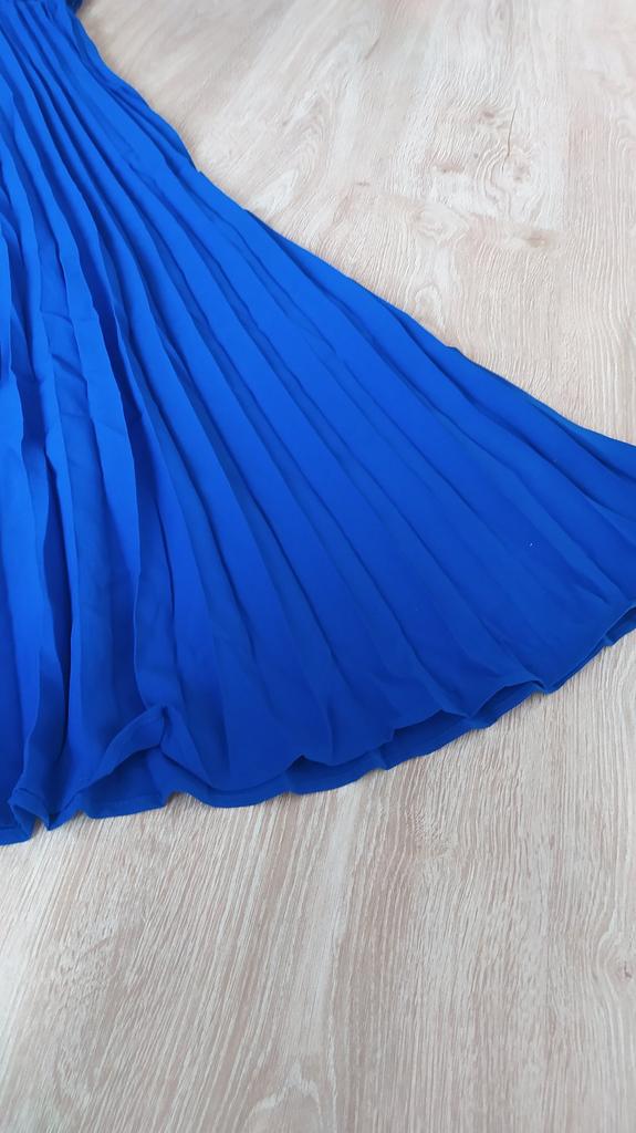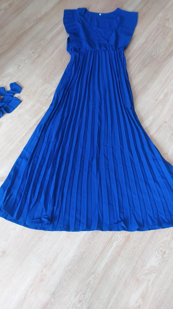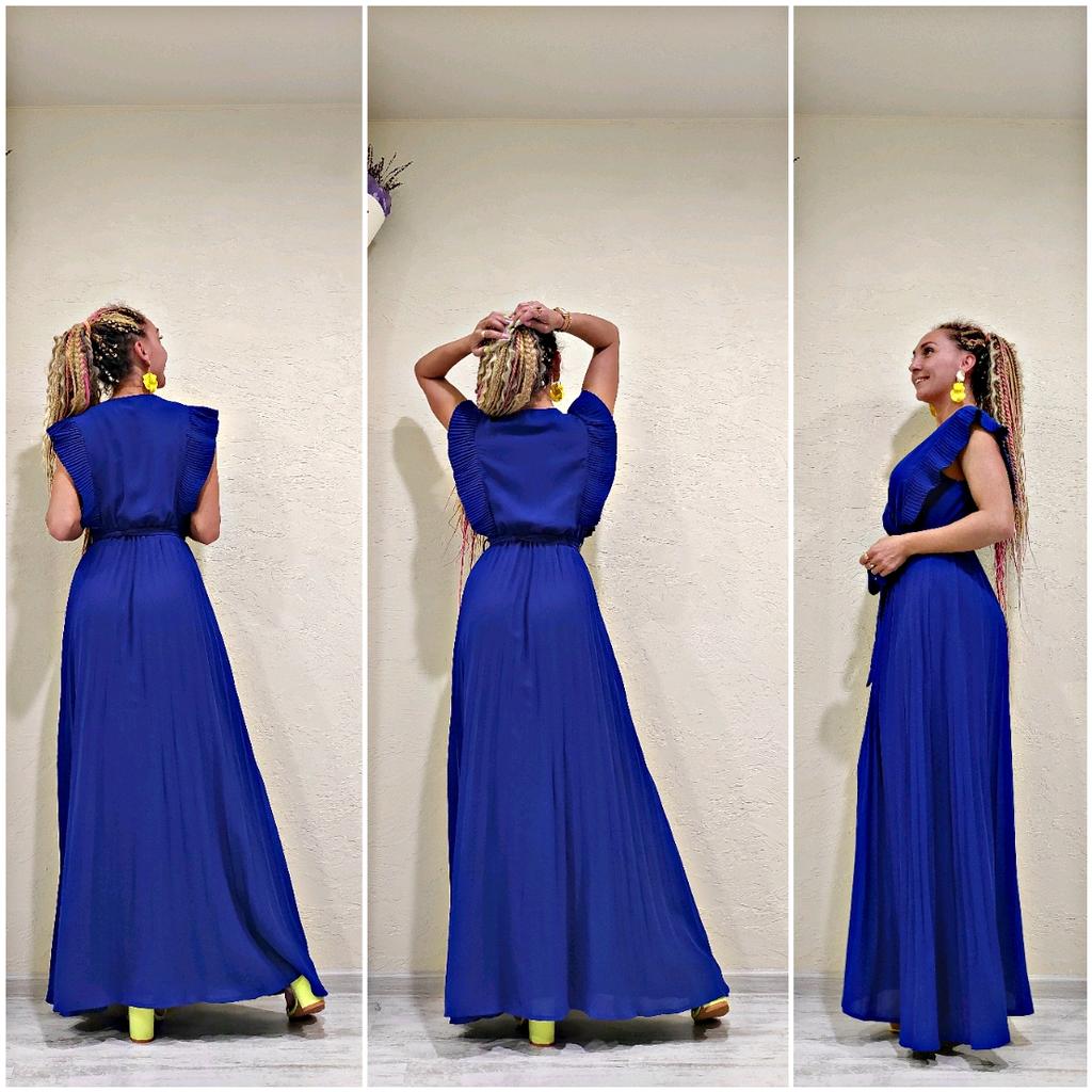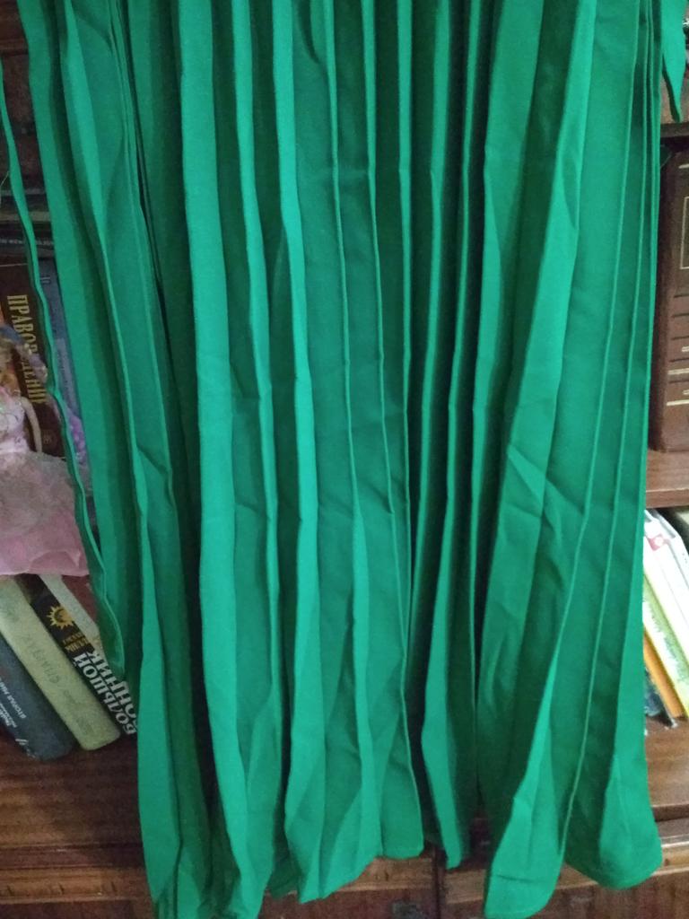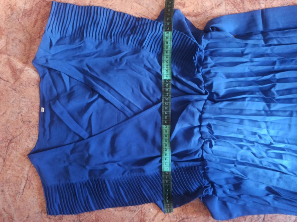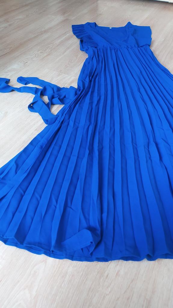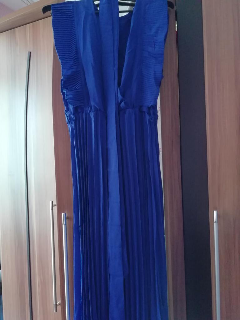 The dress is wonderful, the size is right, the color is deep blue, I have already removed the length. All that remains is to steam it, the fabric is thick, it holds its shape well