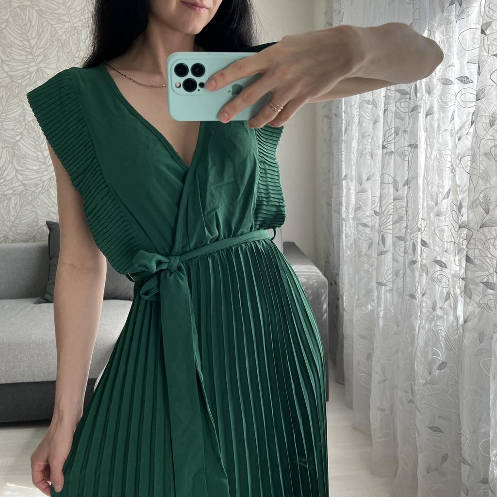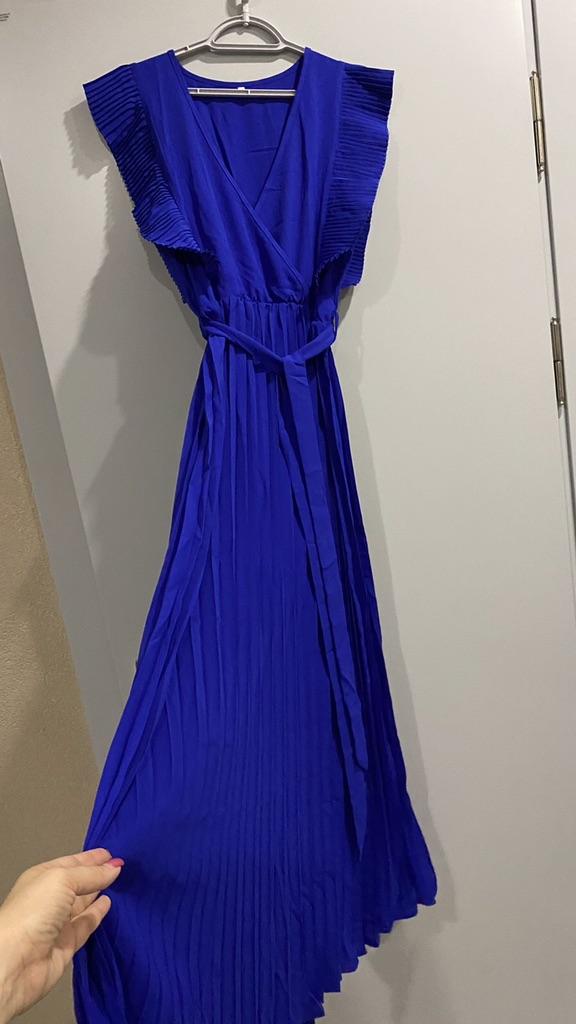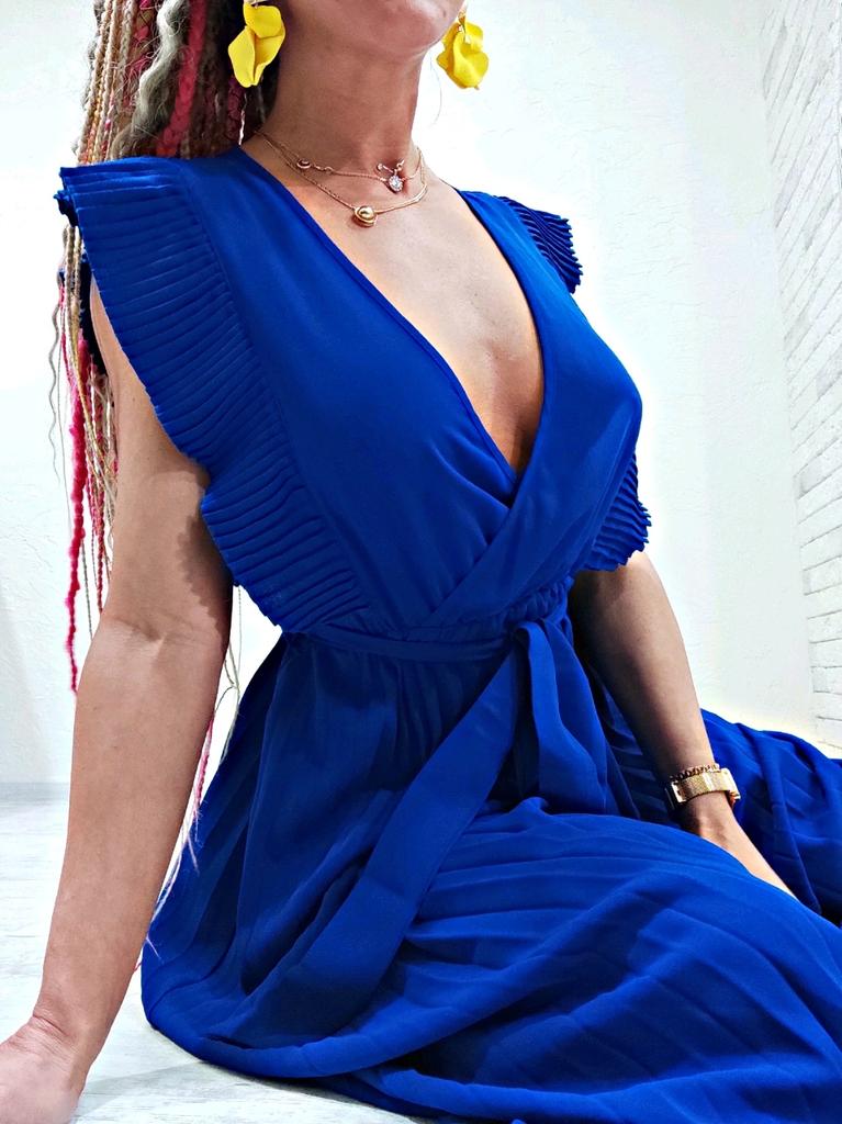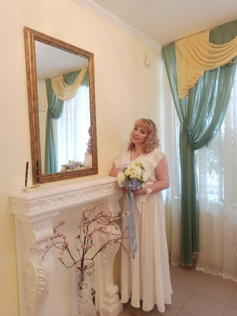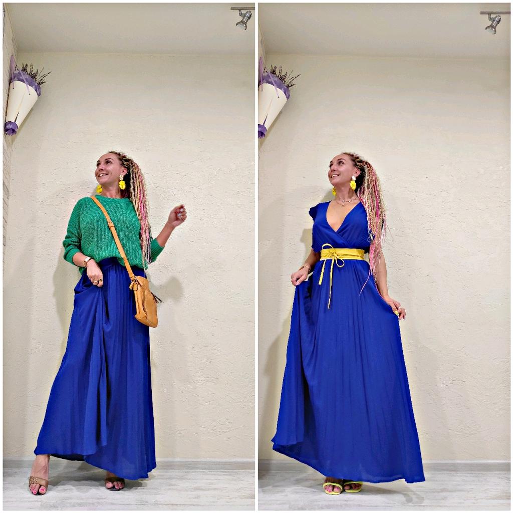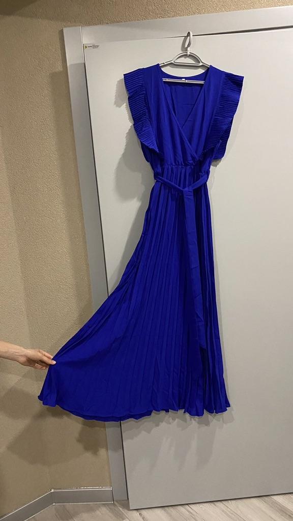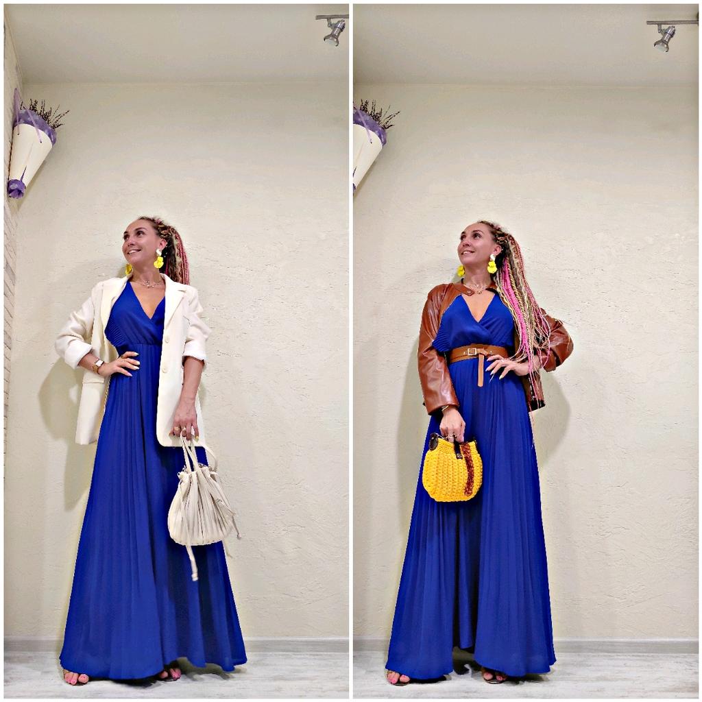 The dress is wonderful, the size is right, the color is deep blue, I have already removed the length. All that remains is to steam it, the fabric is thick, it holds its shape well