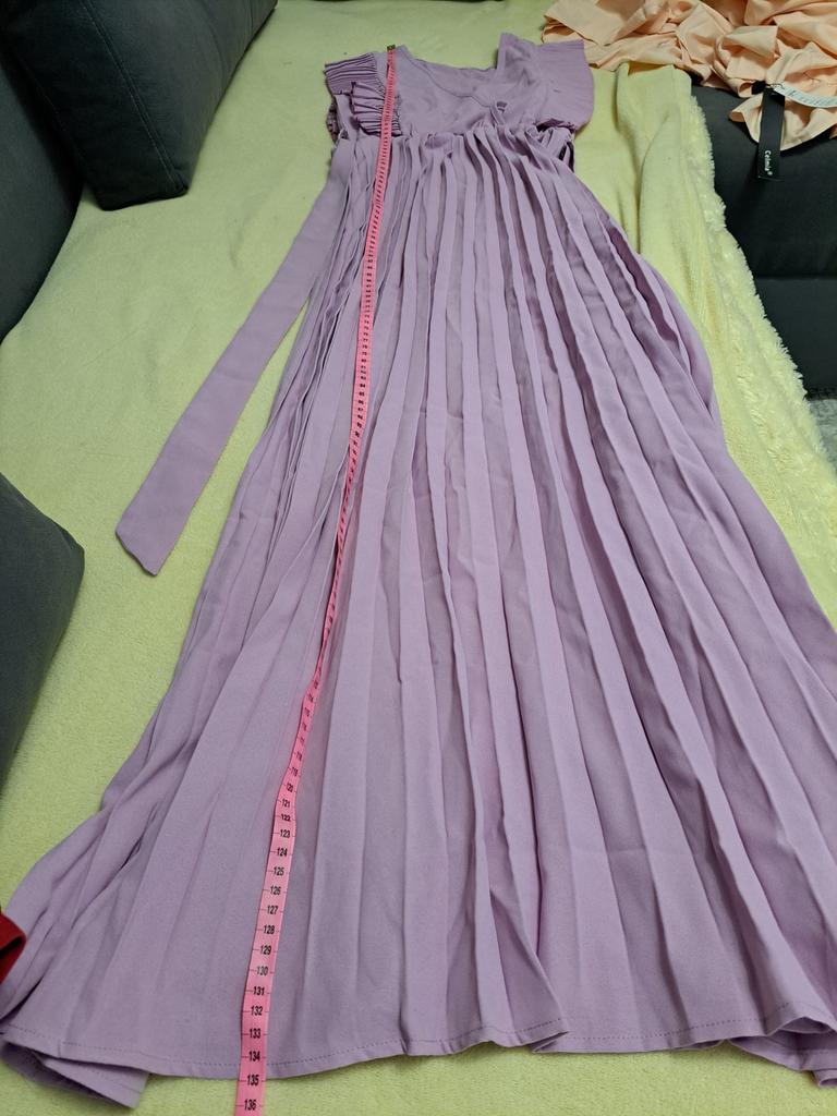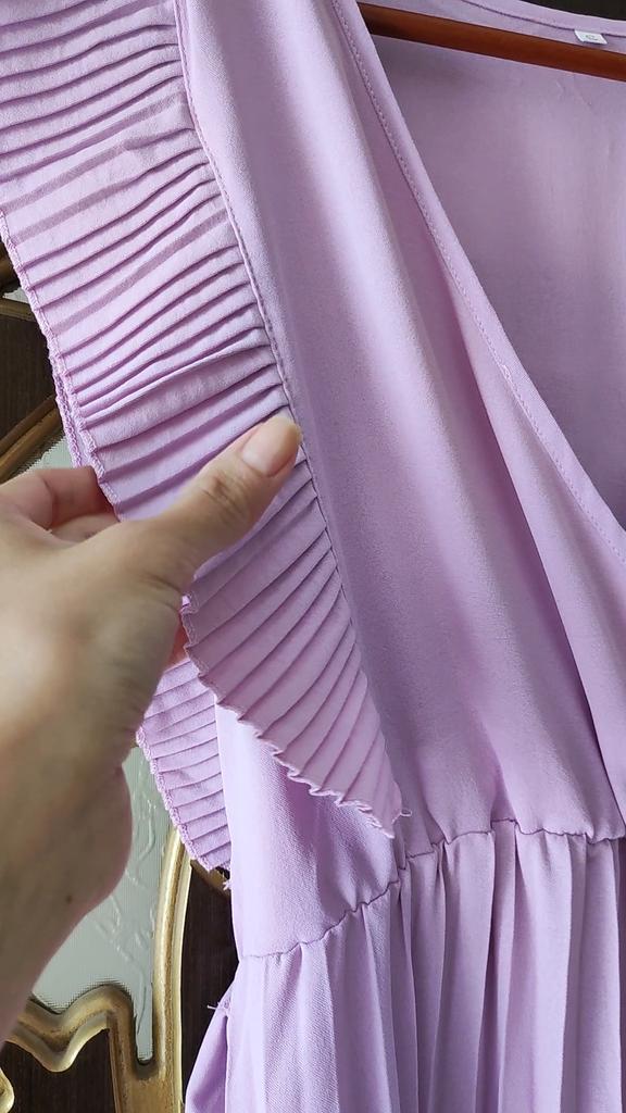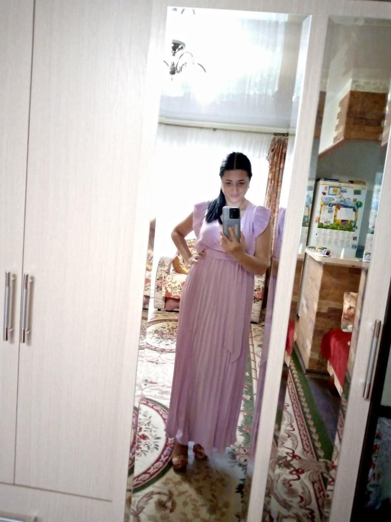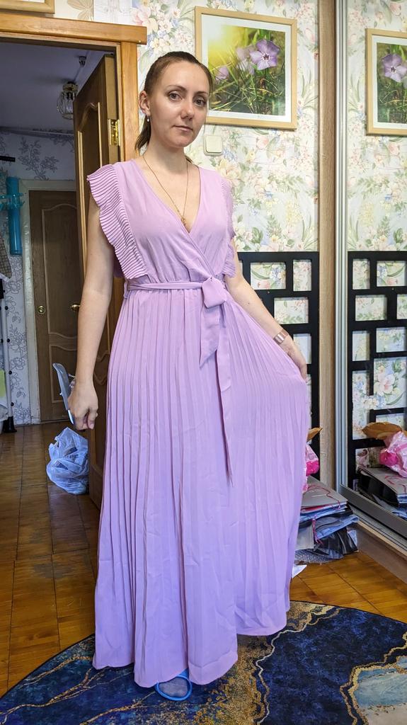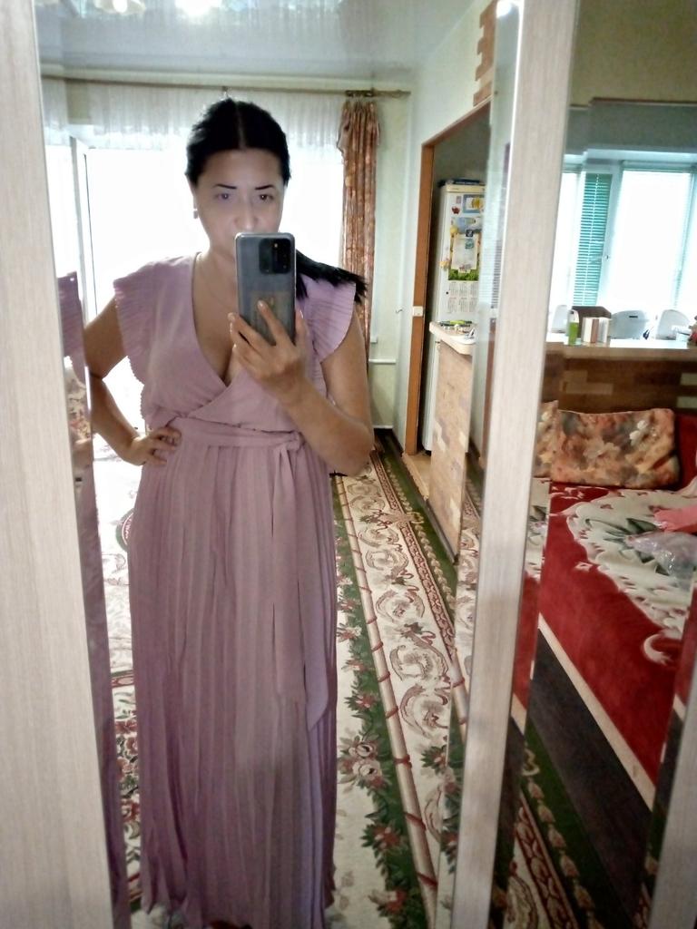 Disappointed! Color - faded purple The dimensions are not clear to me at all Neckline - I have no idea what to do with it, I can not sew it, I bought her dress I can breastfeed Fabric - in the bloggers' reviews it was described as "chiffon type fabric, practically inelastic", I expected it to be chiffon (I still have a dress of this model, black, 3/4 and it's made of chiffon). For summer, the fabric is heavy and thick, but at the same time - transparent. It also has seam defects, but I can't upload more photos