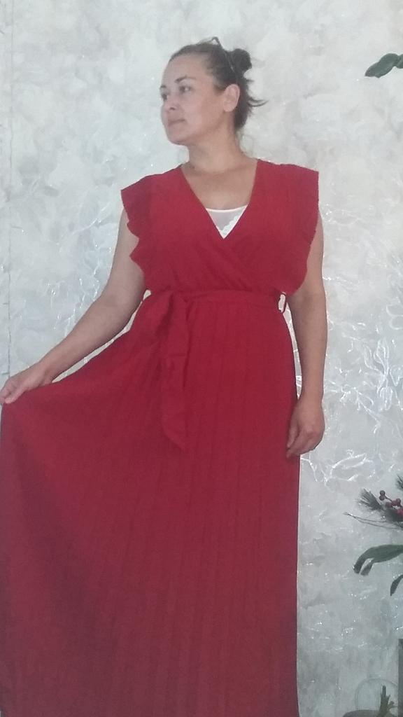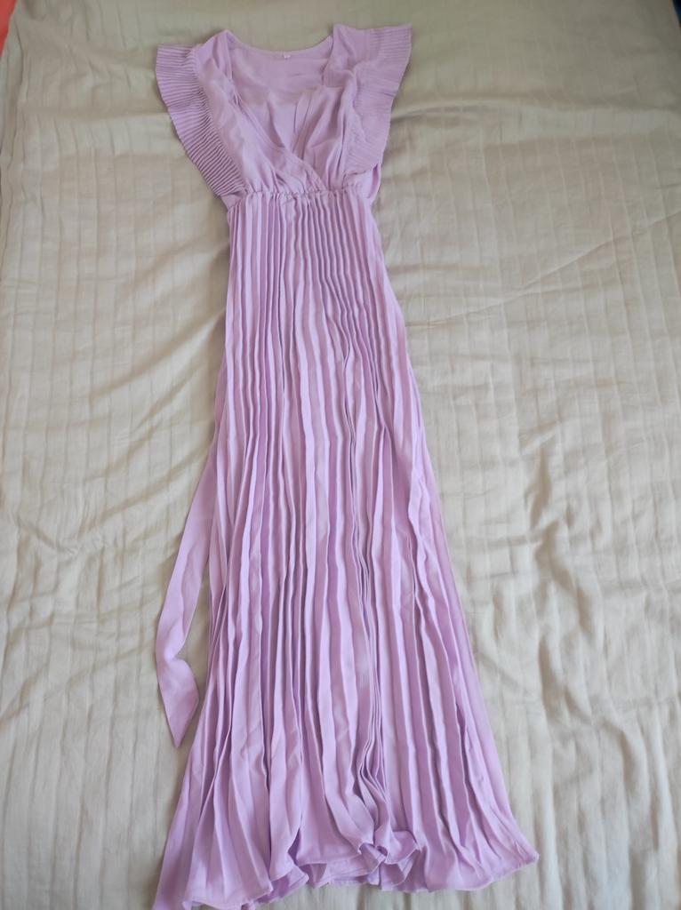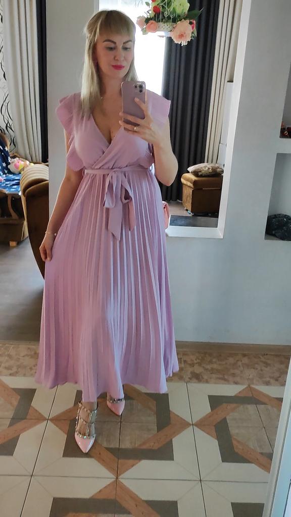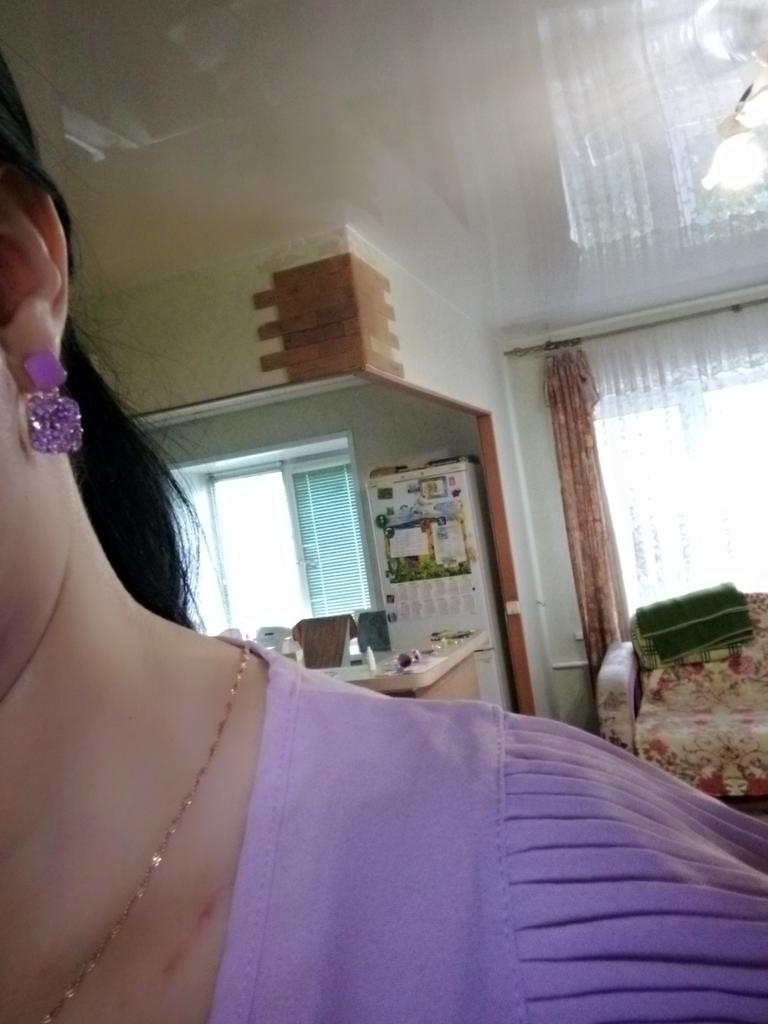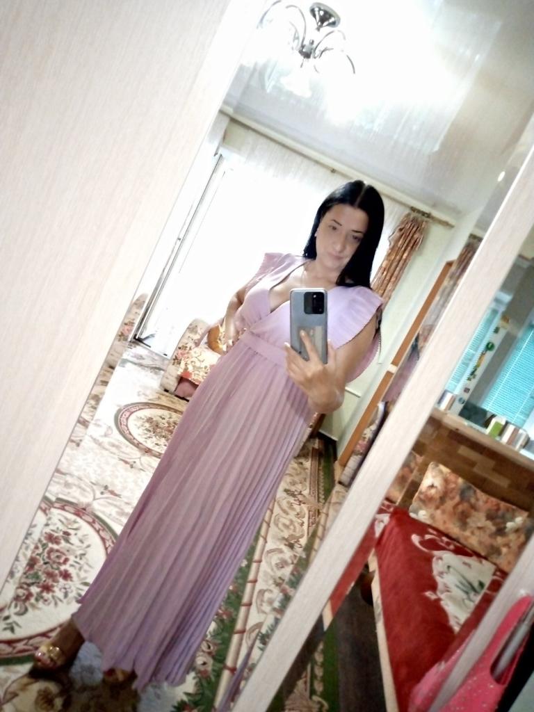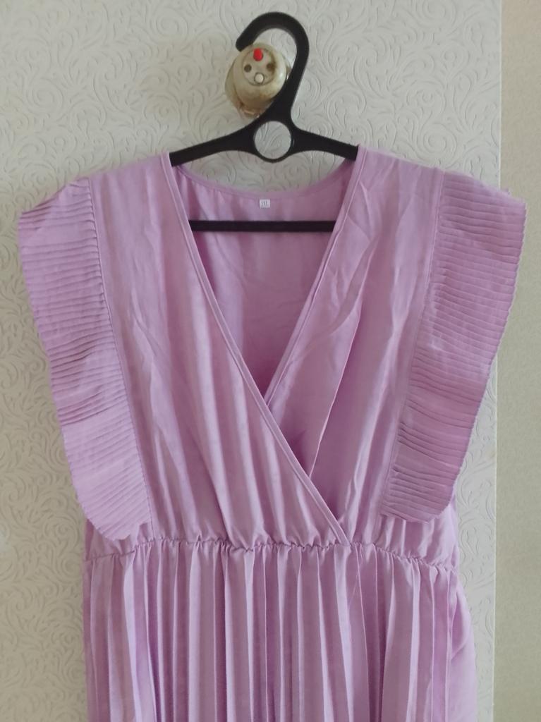 Disappointed! Color - faded purple The dimensions are not clear to me at all Neckline - I have no idea what to do with it, I can not sew it, I bought her dress I can breastfeed Fabric - in the bloggers' reviews it was described as "chiffon type fabric, practically inelastic", I expected it to be chiffon (I still have a dress of this model, black, 3/4 and it's made of chiffon). For summer, the fabric is heavy and thick, but at the same time - transparent. It also has seam defects, but I can't upload more photos