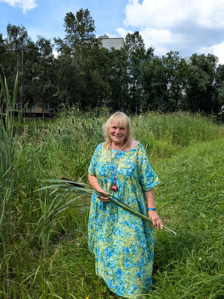 This dress runs slightly small for one-size and loose style. The Joom picture doesn't really show the colours accurately. The background colour is darker. The fabric has a soft cottony feel. Joom delivery is painfully slow, so don't order if you need normal delivery time.