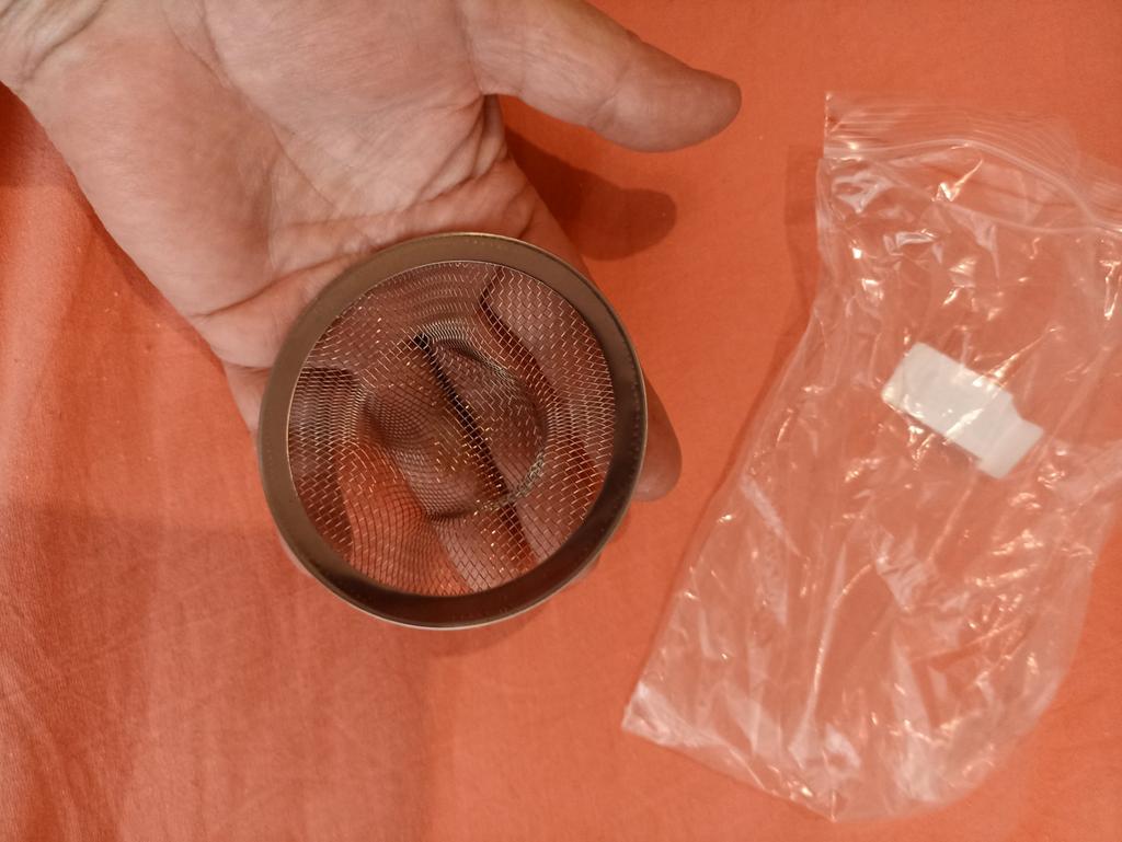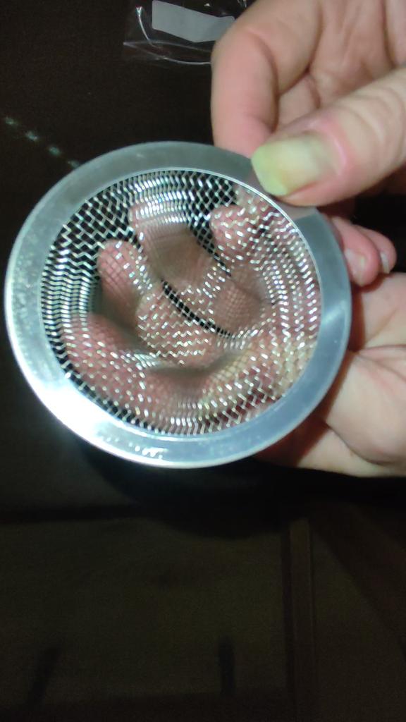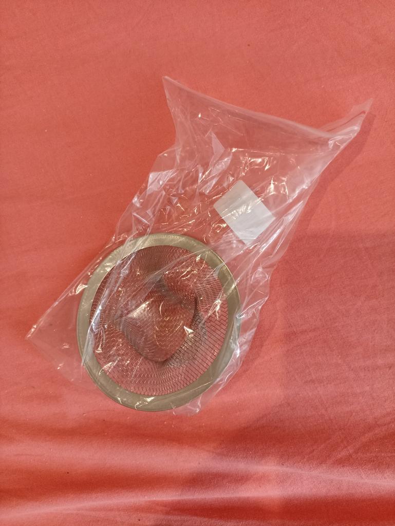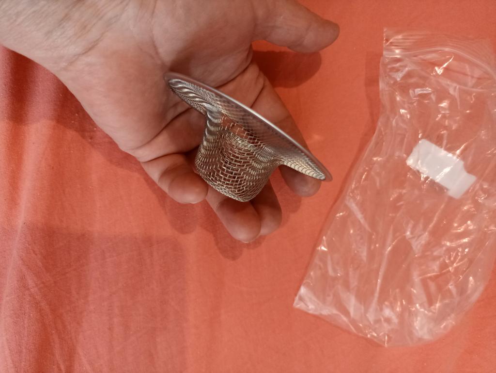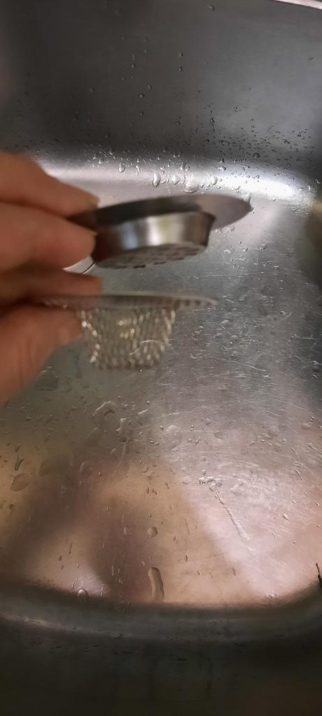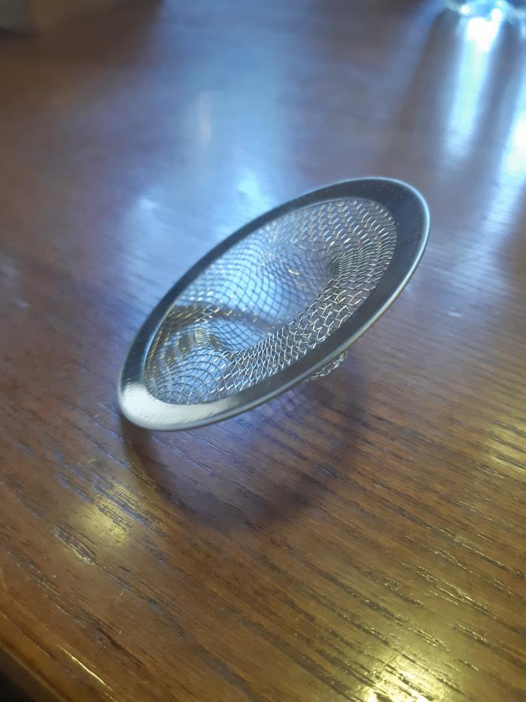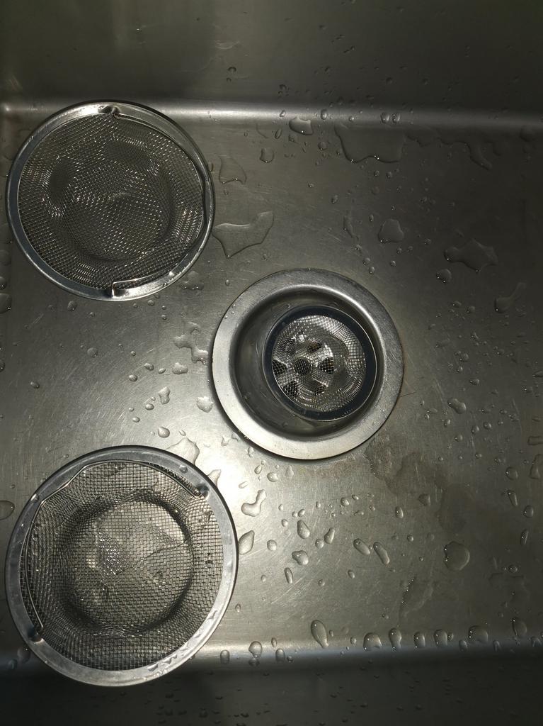 The strainer arrived, but it didn’t fit on the sink, it wasn’t enough, crumbs still ended up in the drain.