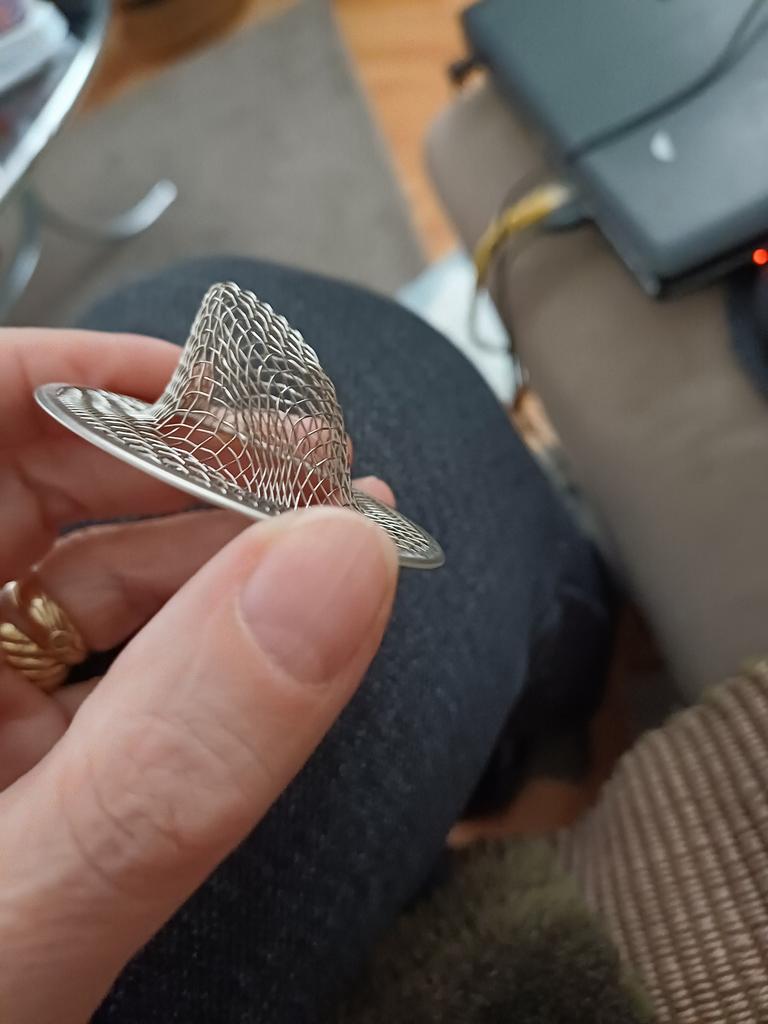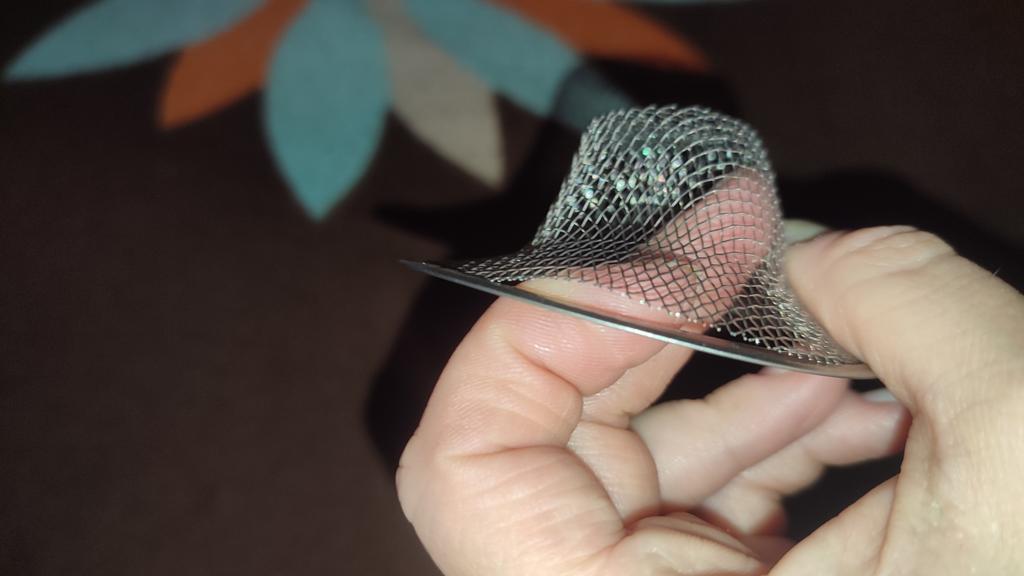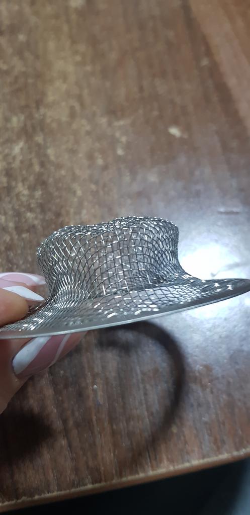 The metal mesh arrived intact, just right for my sink, it’s rigid and doesn’t change shape.