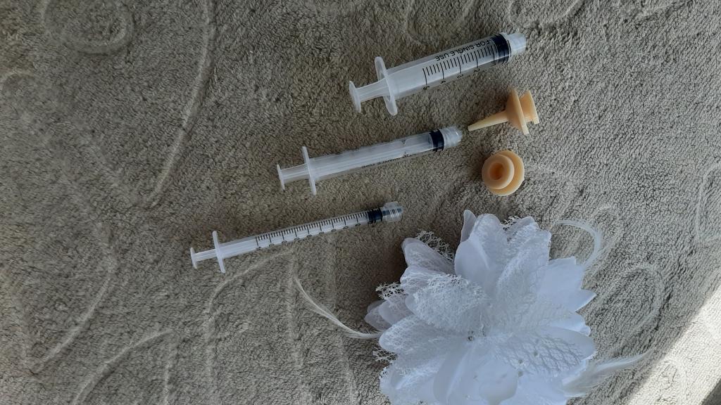 SYRINGES WITH SILICONE TIPS. FOR ANIMALS, TO GIVE MEDICINE. IN MY CASE. GOD GRANT THAT THEY WON'T BE NEEDED. 3 SYRINGES, BUT 2 TIPS, STRANGE.