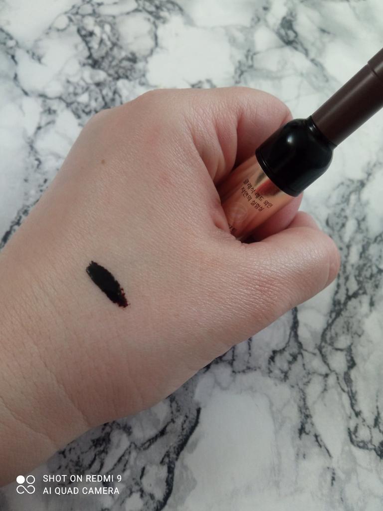 Dyes red. I washed it off so as not to walk around with red eyebrows, even though I ordered a brown one.