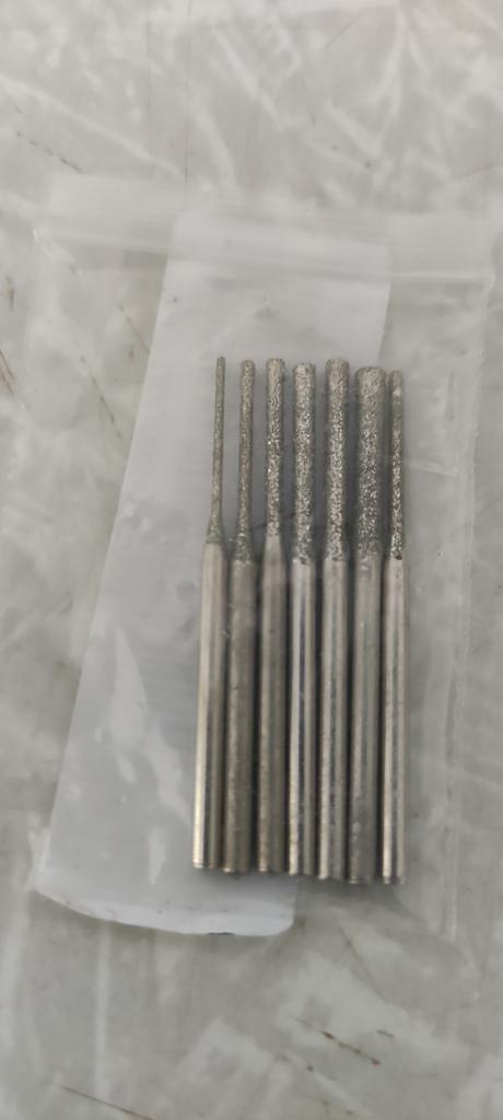 Seven diamond-coated drills of different diameters