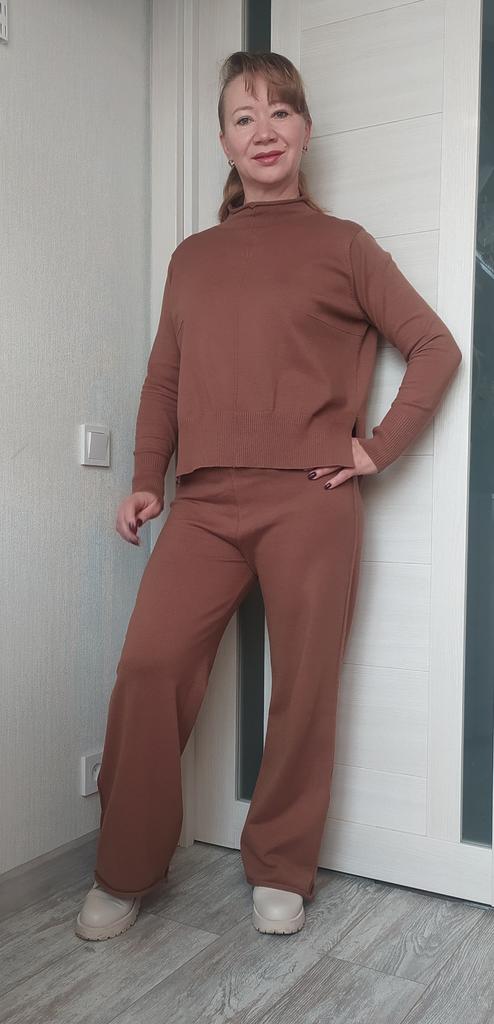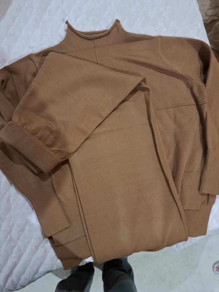 An absolutely wonderful set!! 🧡 🌟 Very high quality material 🌟 Very well made and finished seams 🌟 The color coincides with the one in the presentation photos 🌟 Suitable for the autumn-winter season 🌟 Special and loose cut 🌟 Size: I usually wear XS clothes, and this set is a little big for me, but I feel extremely well dressed in it I recommend with love! 🧡