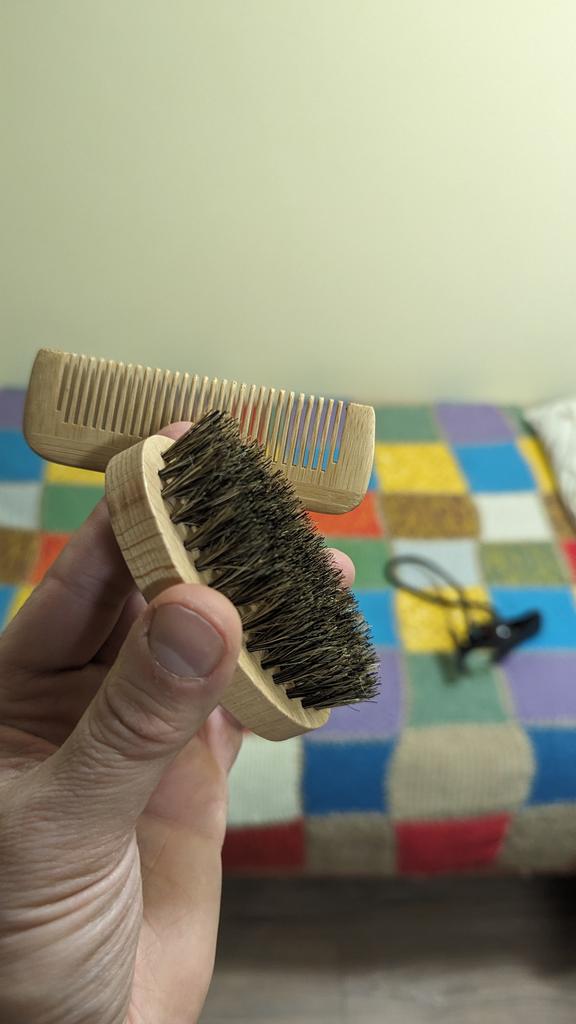 Well done brush and comb. Wood. Very pleasant to use. The right size for travel too.