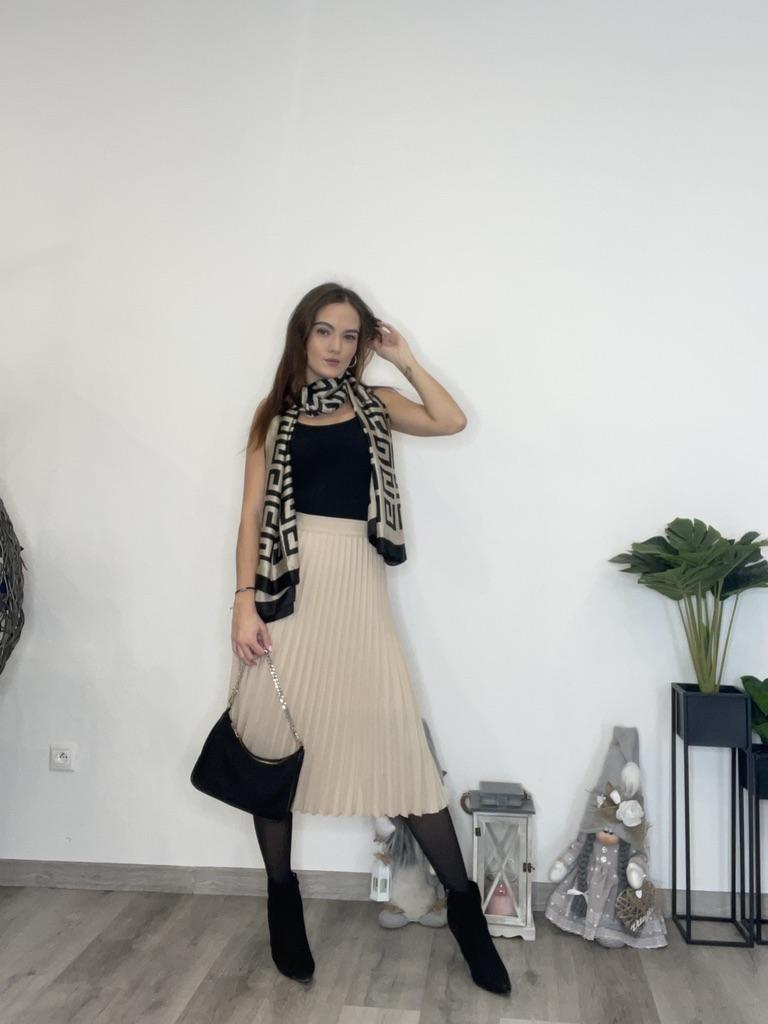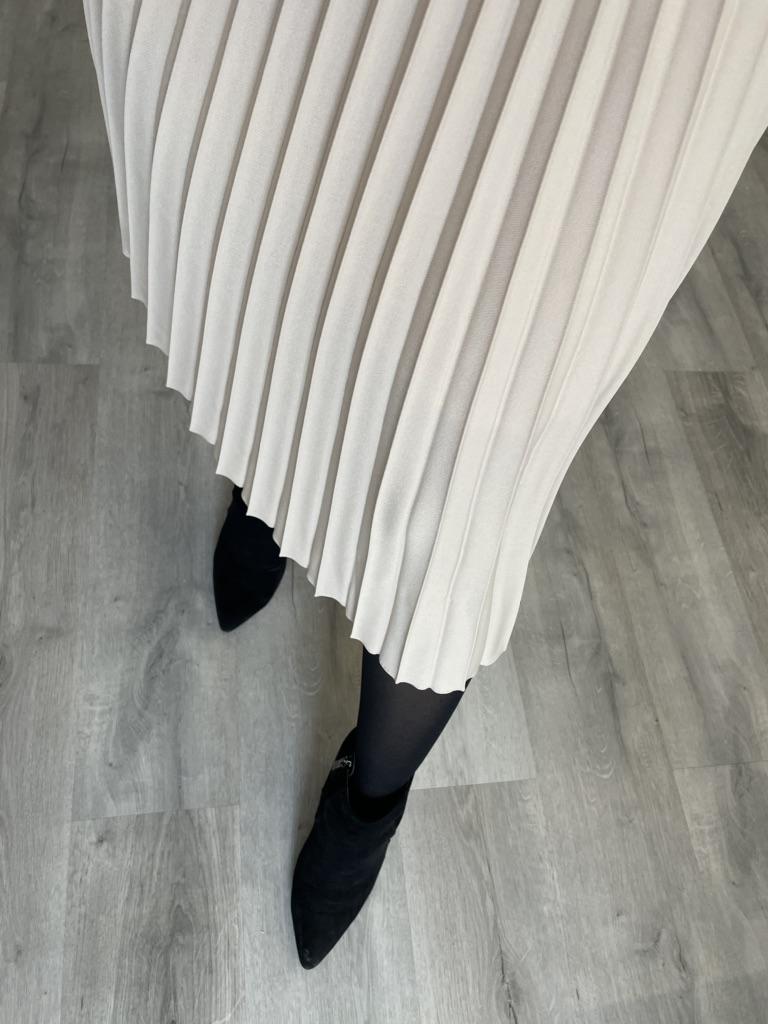 Women Spring Autumn Elegant Chic Solid Pleated Skirt High Waist Luxury Fashion With Elastic Female C-035