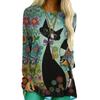Autumn Women Cartoon Cats Print Long Sleeve Cotton T-shirt Casual O-Neck Loose Tshirts Female Streetwear Tops 6XL