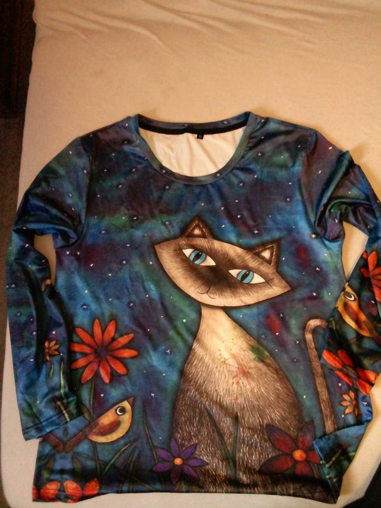 Cartoon cats thin autumn sweater. I like it. 😘🦋