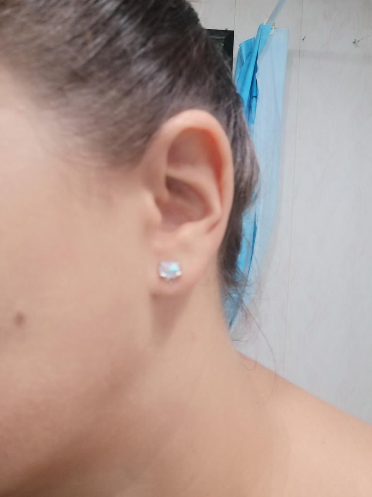Everything as described. The earrings are small, but look beautiful. They shine on the ear and attract attention. They wear well and do not cause allergic reactions.